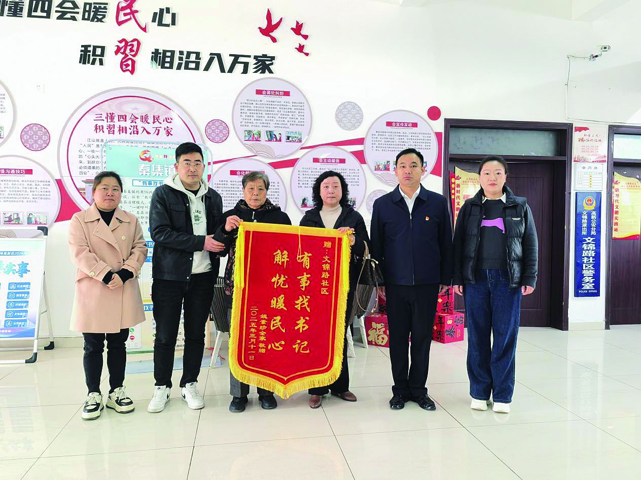 近日,姚奶奶及其家人滿懷感激之情,將一面寫著“有事找書記 解憂暖民心”的錦旗送到社區。姚奶奶說,在最無助的時刻,通過這一平臺找到了基層黨組織,讓他們切實感受到了溫暖。