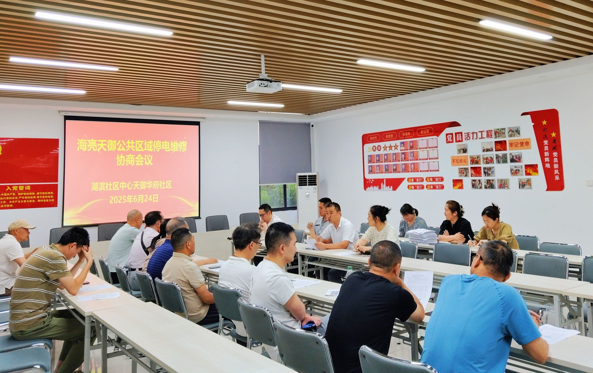 海亮天御小區的地庫,照明系統、出入道閘、小區路燈、大堂照明等電力系統故障。“不能等,要快。”天御華府社區黨委書記王莉娟帶著物業人員蹚水排查線路到深夜,發現是電路遇水短路。次日清晨,由社區黨委牽頭,物業、業委會參加的“三方會診”在地庫里舉行。當天,維修人員緊張作業,當燈光重新亮起時,居民微信群瞬間被點贊表情刷屏。