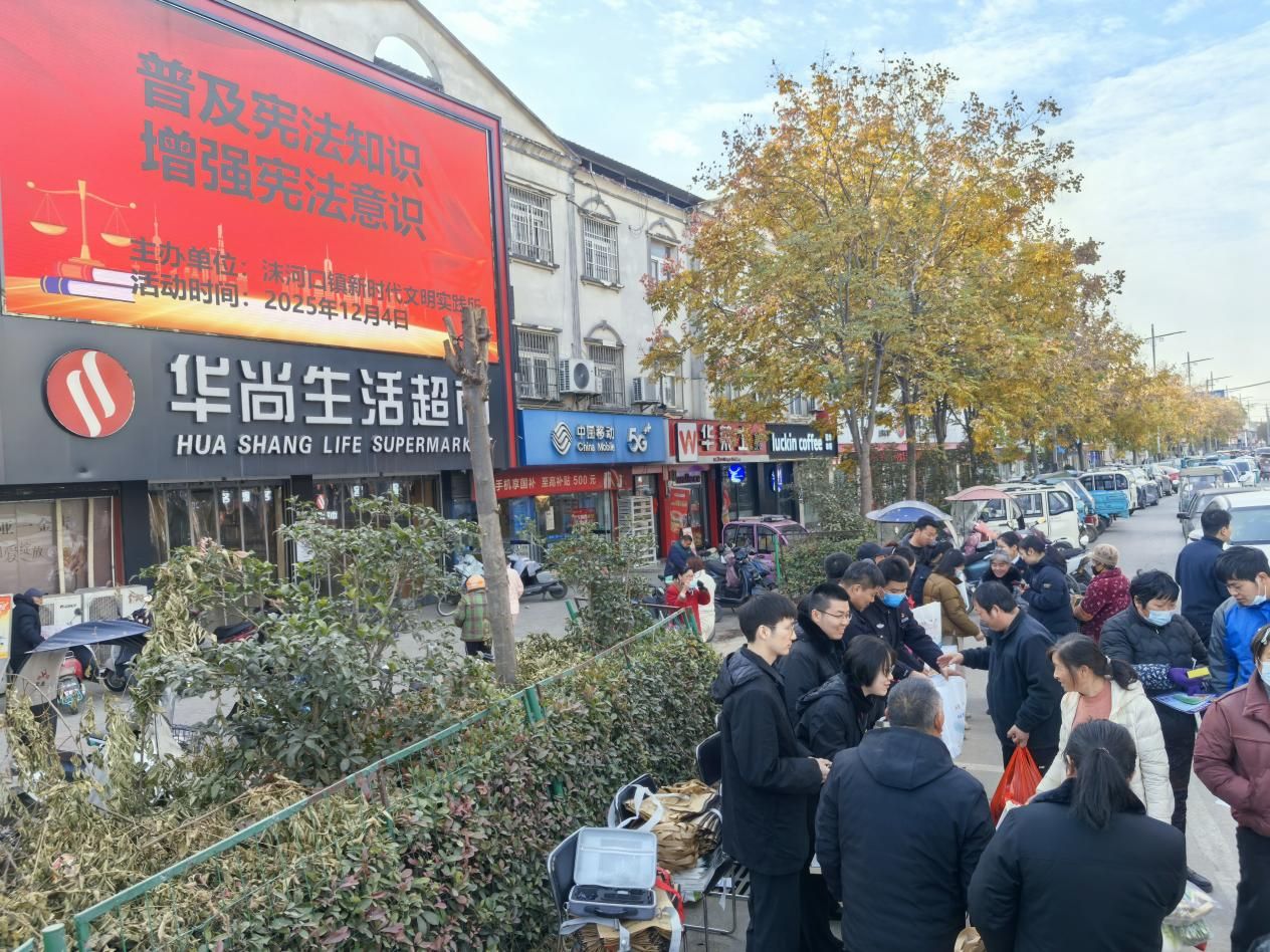 2025年12月4日,正值第十二個“國家憲法日”,淮上區沫河口鎮新時代文明實踐所聯合鎮平安辦、婦聯、司法所、派出所及蚌埠市中級人民法院等多家單位及部門,在華尚生活超市門前人流密集處共同舉辦了“普及憲法知識 增強憲法意識”宣傳活動,將憲法知識和法治精神送到了群眾身邊。