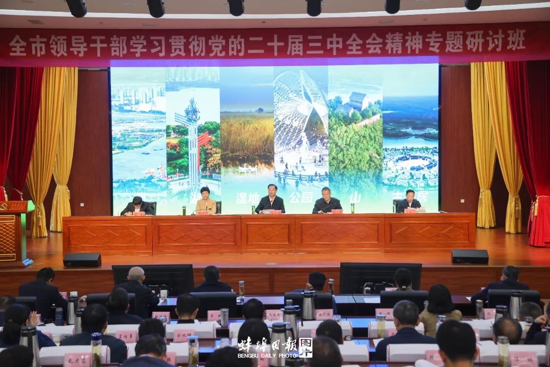 蚌埠文明網訊 (李揚/文 陳昂/圖)10月24日,全市領導干部學習貫徹黨的二十屆三中全會精神專題研討班在市委黨校開班。市委書記黃曉武出席并講話,市委副書記、市長馬軍主持開班式,市領導張曉靜、郭家滿、葛銳,市委理論學習中心組成員,其他在職市級領導干部參加。