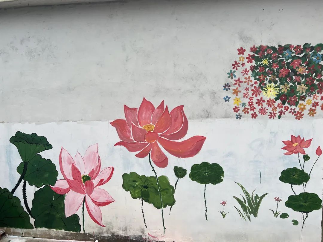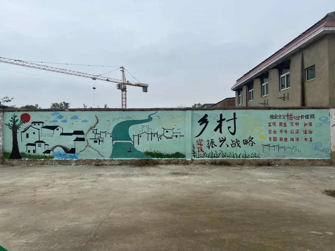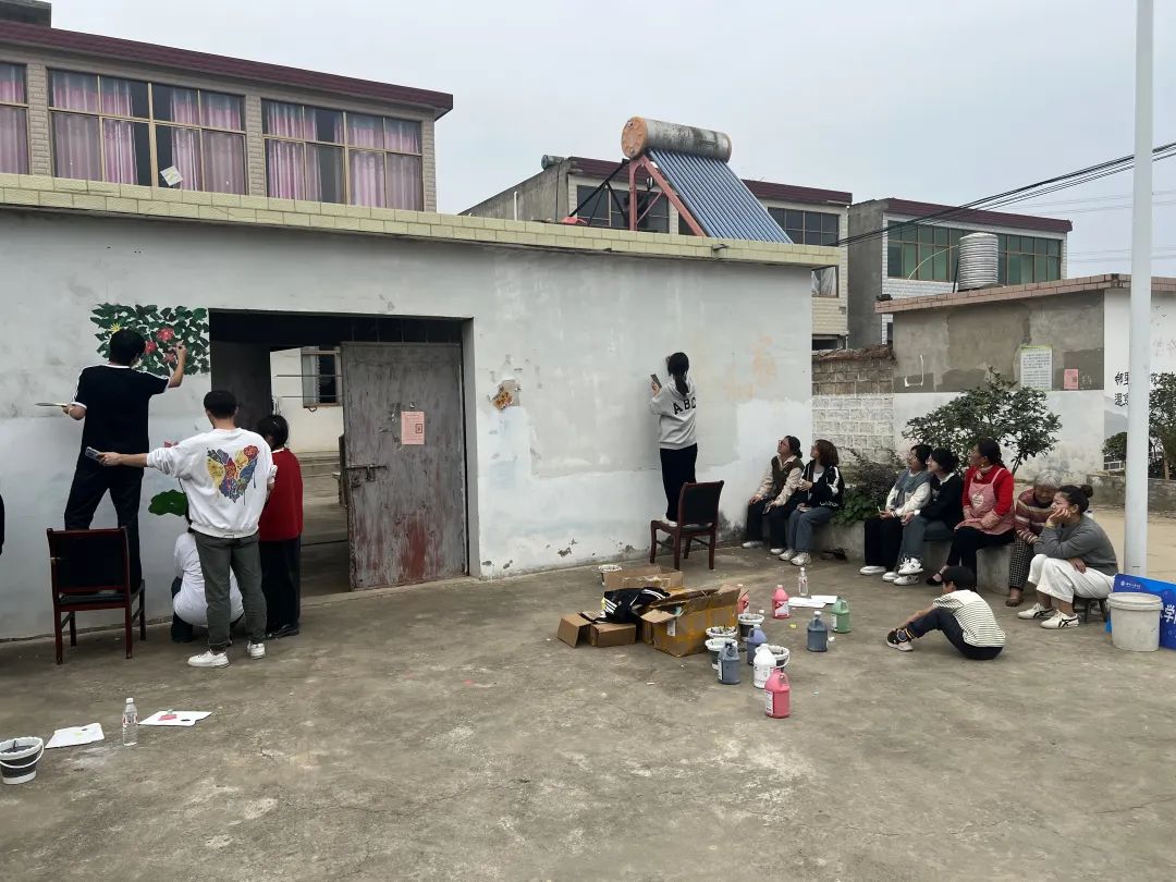 彩繪過程中,志愿者們充分發揮專業優勢,運用豐富的色彩和巧妙創意勾勒出鄉村振興事業的美好未來,為原本單調的墻面賦予新的生命和活力。
