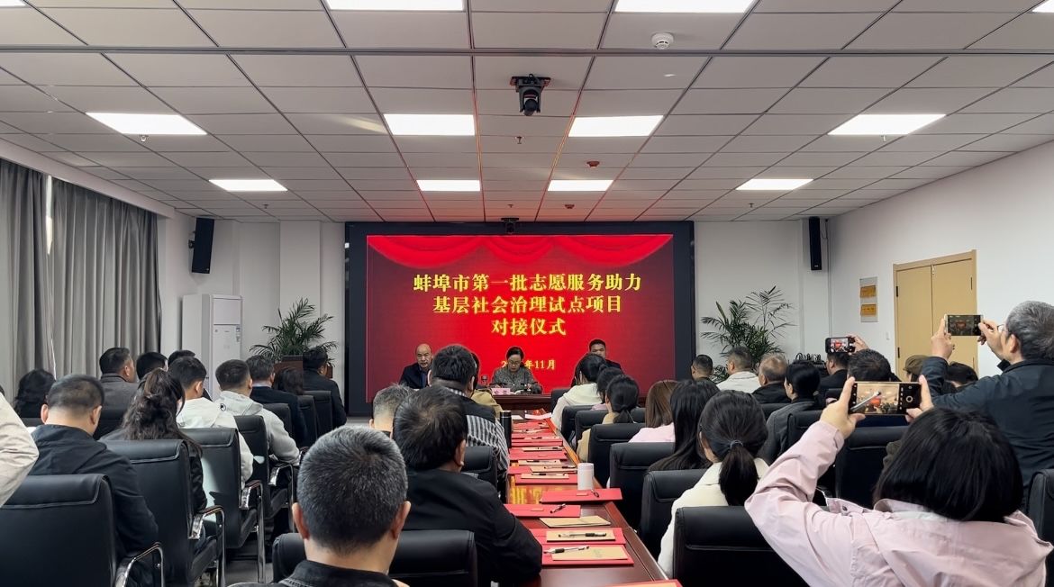 蚌埠文明網訊(融媒體記者 周芳林 通訊員 吳光明 文/圖)11月8日下午,蚌埠市第一批志愿服務助力基層社會治理試點項目對接儀式活動舉行。通過結對共建活動的深入開展,構建資源共享、優勢互補、共同提高的互助式志愿服務工作,推進我市志愿服務和社區建設再上新臺階。
