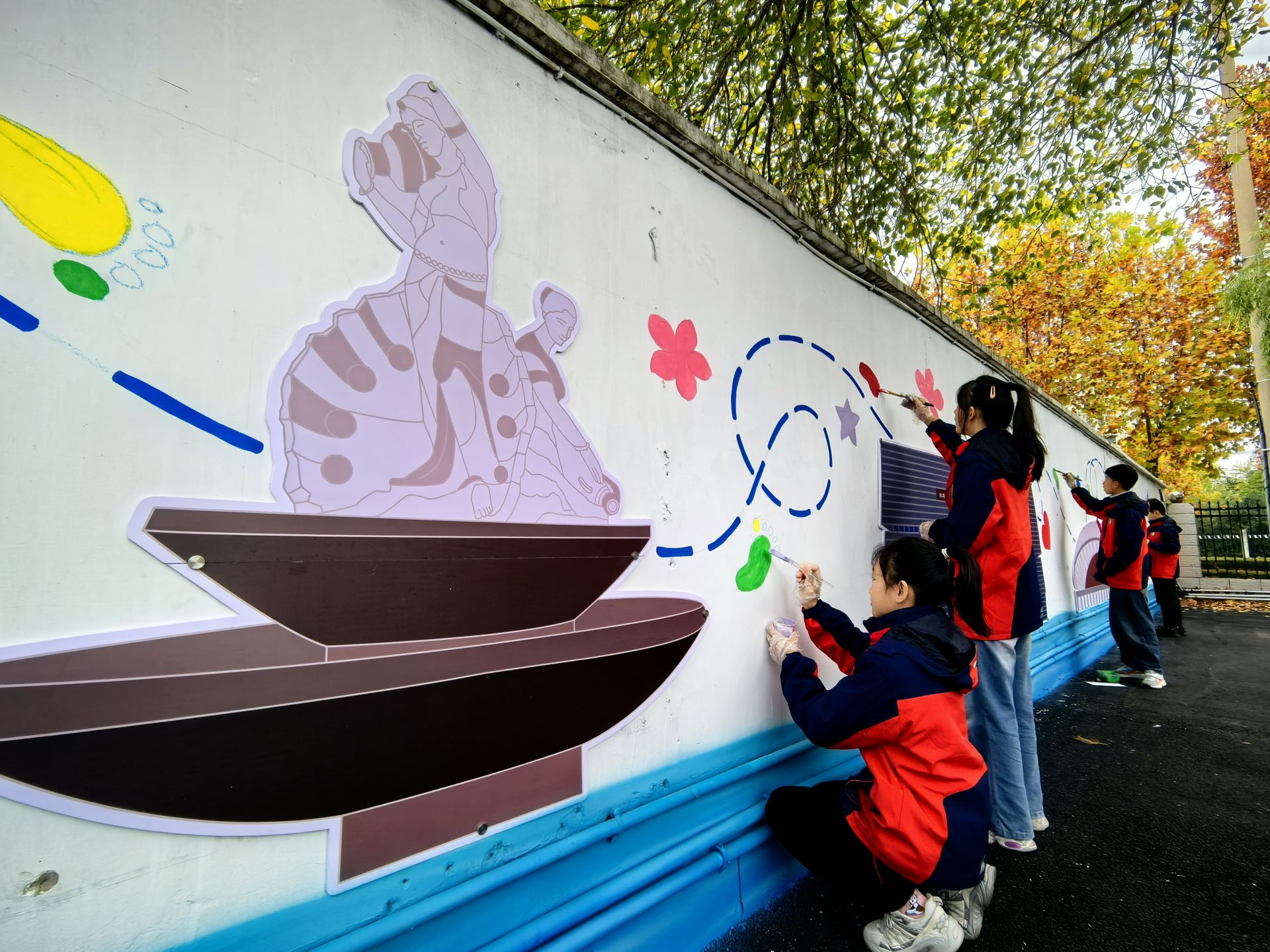 11月19日,蚌埠市第二實驗學校教育集團蘭凌路小學師生以創新的藝術視角,用手中的畫筆將家鄉的重要文化景點和特色文化元素一一生動呈現校園墻,集中展示珠城神奇俊秀的自然景觀和璀璨多姿的人文歷史。融媒體記者 陳昂 攝