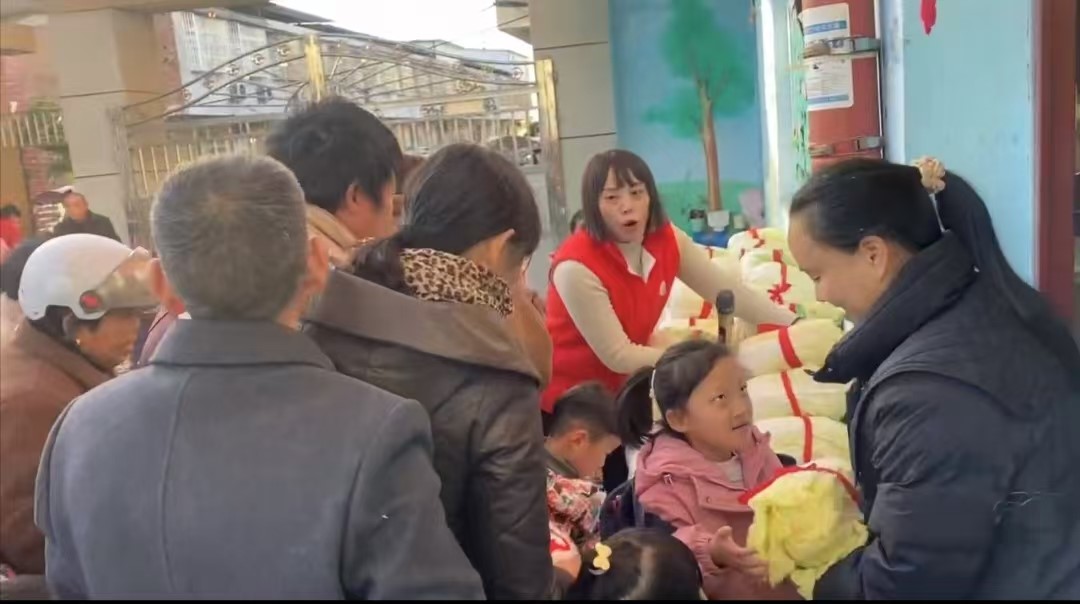 孩子們表現得非常積極。他們親手將白菜遞給家人并送上溫暖的祝福。收到白菜的家人們紛紛表示感謝,孩子們也從中感受到了助人為樂的喜悅。