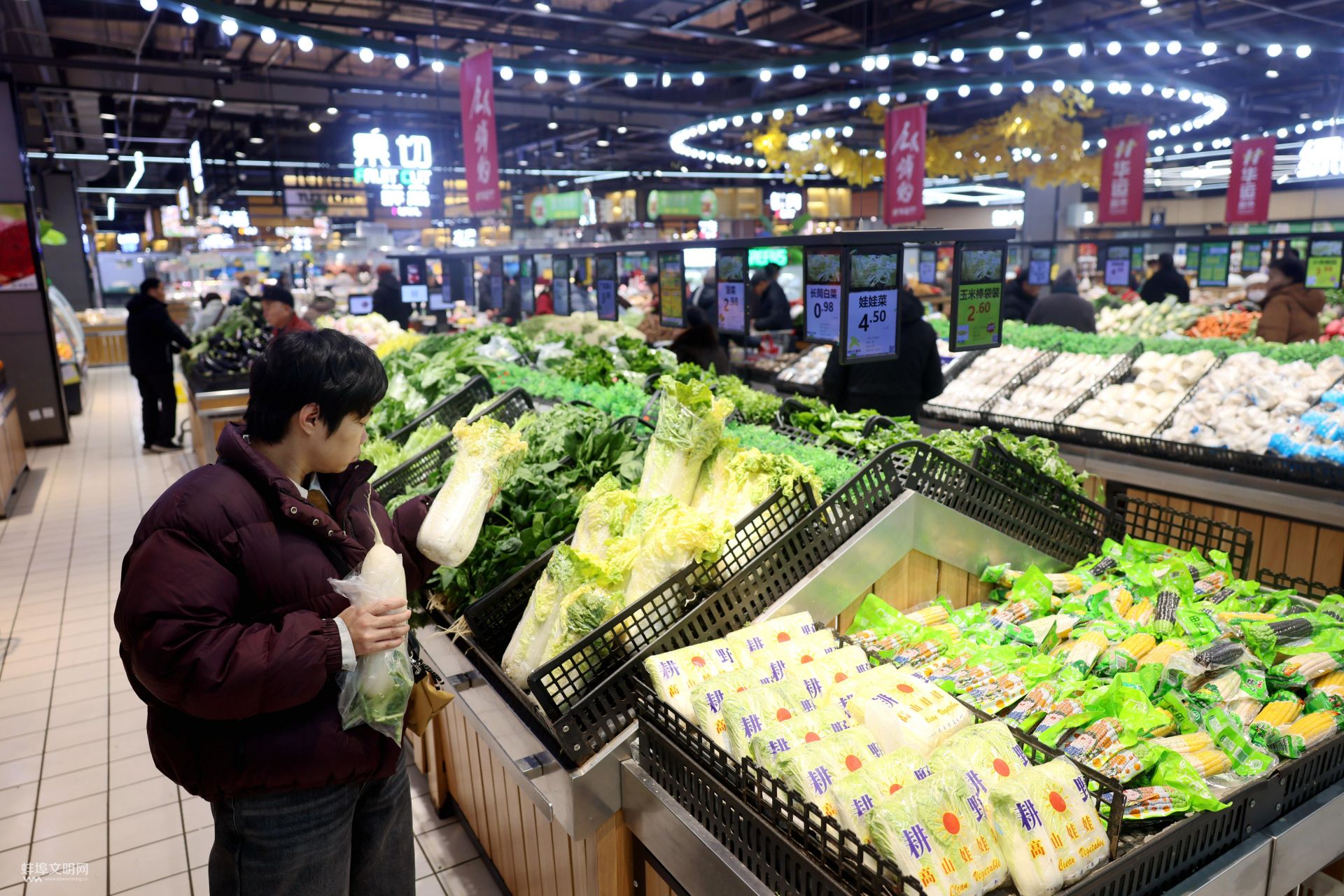 華運超市中心店,市民在挑選綠色農產品。