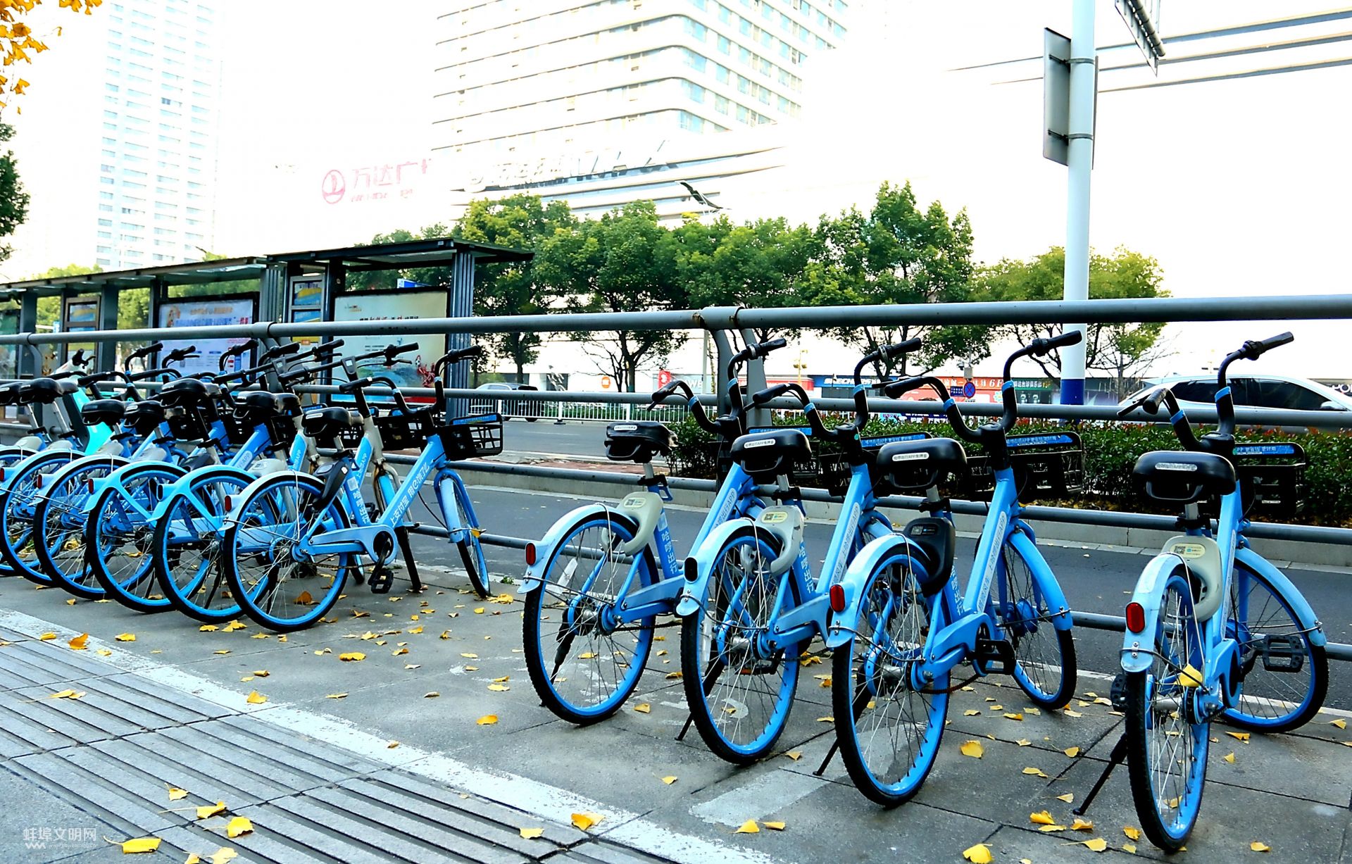 共享單車,綠色出行。12月11日,東海大道萬達附近,整齊停靠在路邊的共享單車。