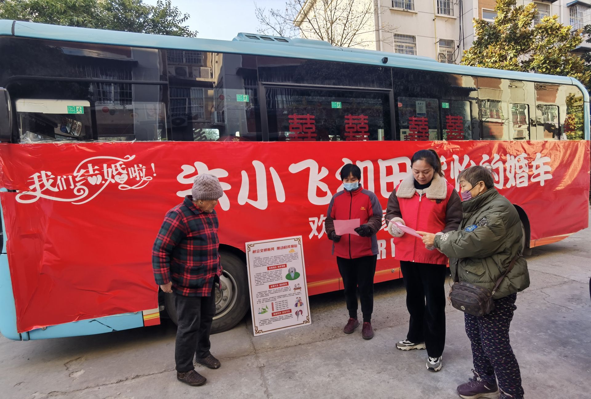 12月16日,小蚌埠鎮(zhèn)桂花園社區(qū)內(nèi)田府嫁女喜氣洋洋,伴隨著鏗鏘有力的喇叭聲,一輛裝扮喜慶而又浪漫的新能源公交婚車吸引了過往行人的目光。這輛公交車承載著一項特殊的使命——帶著鮑集鎮(zhèn)的帥氣小伙朱小飛和他的至愛姑娘田紫怡向幸福出發(fā)。