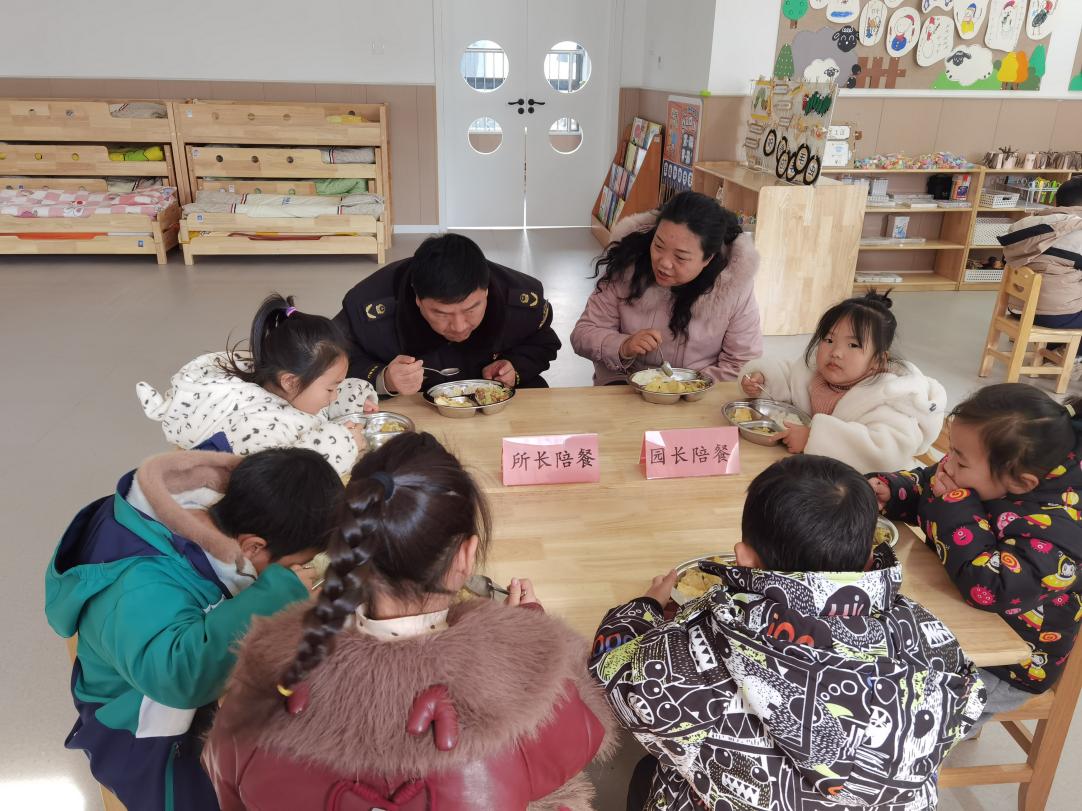 午餐時間,徐所長和徐園長與幼兒們一同坐在餐桌前,品嘗幼兒園精心烹制的飯菜,親切詢問孩子們的用餐感受。陪餐過程不僅讓孩子們感受到溫暖關(guān)懷,也為幼兒園食品安全管理工作提供了寶貴的建議,讓孩子們吃得開心、家長放心、社會安心。