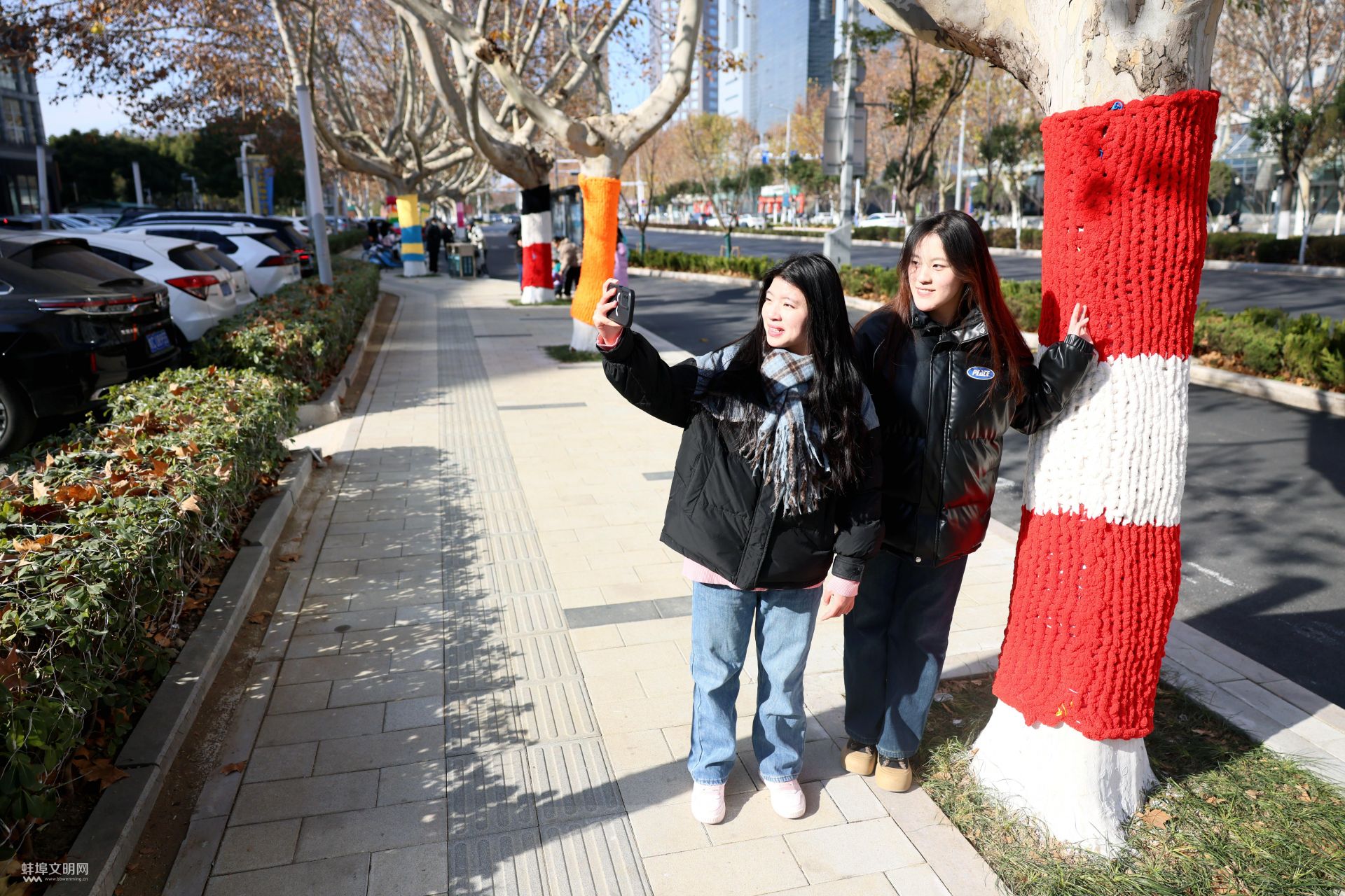 12月22日,位于涂山路南側百大寶龍店段的行道樹被組團“穿上”了“多巴胺毛衣”,在吸引市民前來打卡的同時,還為寒冷的冬日增添了一抹暖意。