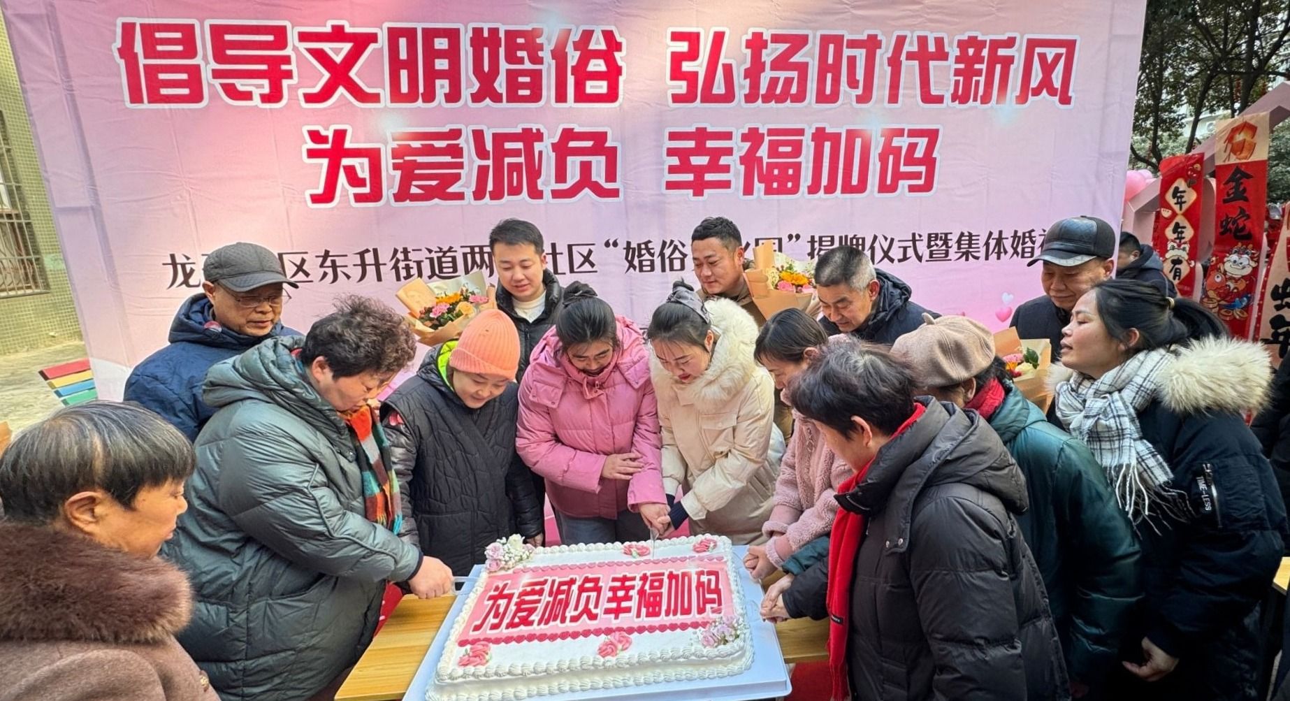 據(jù)了解,此次活動由龍子湖區(qū)民政局主辦,東升街道、兩站社區(qū)承辦,旨在鼓勵年輕人用實際行動倡導正確的愛情觀、婚姻觀、家庭觀,爭做文明婚俗的倡導者、傳播者、踐行者。近年來,作為全省婚俗改革試點,龍子湖區(qū)積極推進結(jié)婚頒證服務(wù)、婚俗禮儀簡約適度、集體婚禮等制度創(chuàng)新,引導群眾自覺抵制高額彩禮,打破陳規(guī)陋習,在全社會形成文明健康、積極向上的婚禮新風尚。