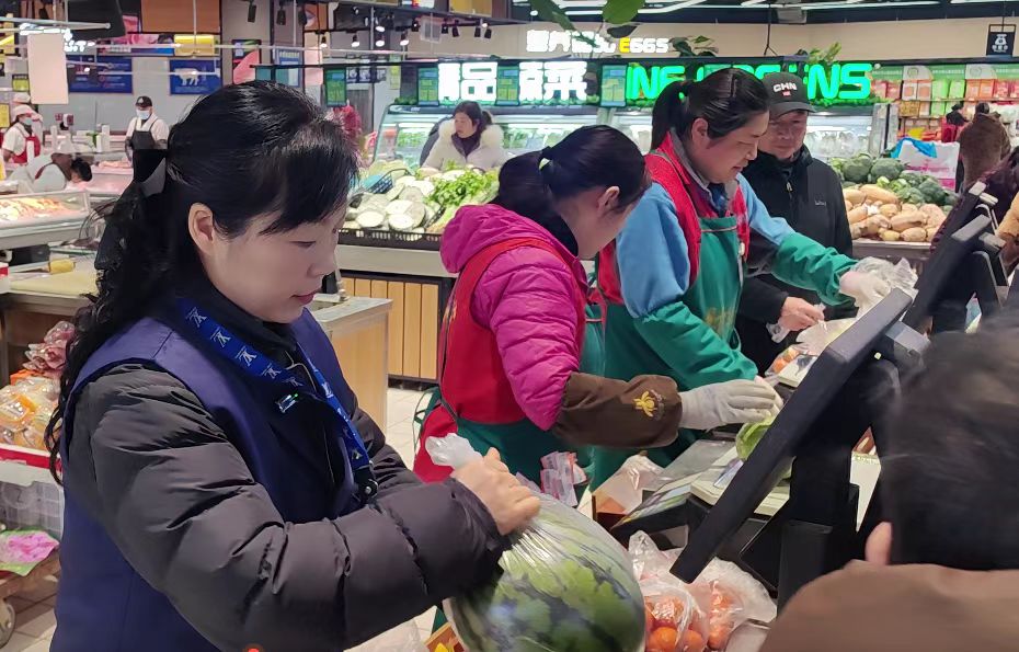 “畢竟過年市民有需求,這幾天我們‘大華運’員工連軸轉是常態,得讓大家過個熱鬧年、喜慶年。”華運超市中心店生鮮處負責人劉芳林一邊理貨,一邊對記者說到。