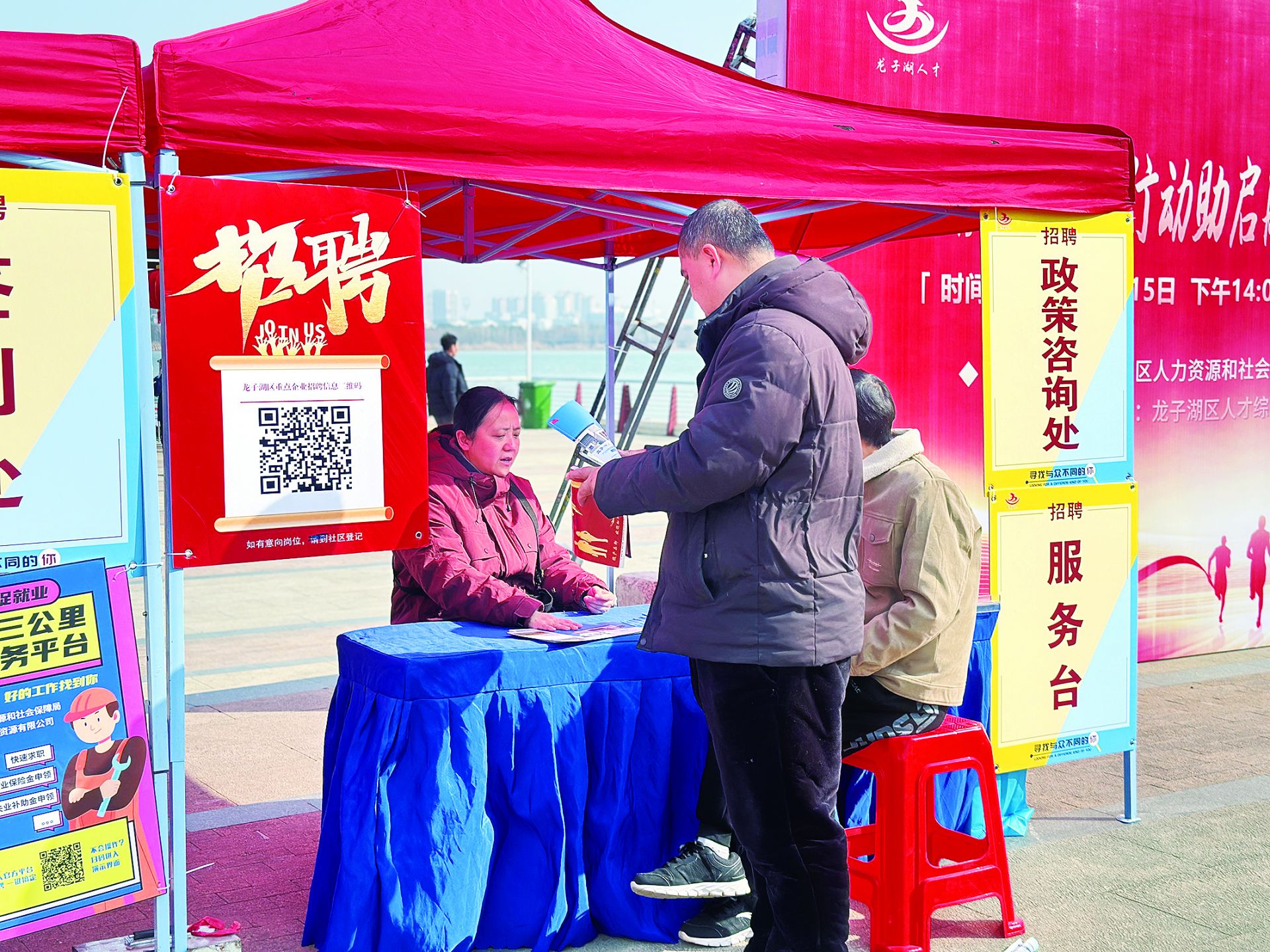 2月15日,龍子湖區人社局在龍子湖公園舉辦專場招聘會。