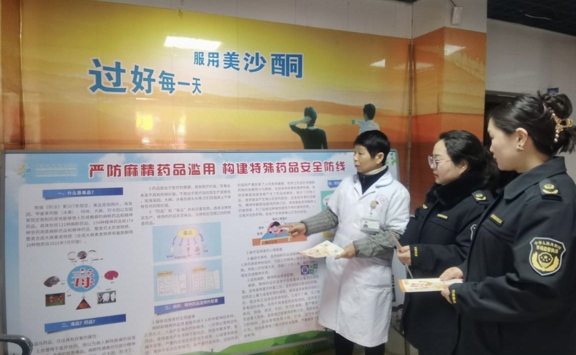 蚌埠文明網訊(融媒體記者 何沛 通訊員 施玉芳 文/圖)為進一步加強我市藥物濫用監測及特殊藥品監管,市市場監管局、禹會區市場監管局結合職能對我市唯一一家美沙酮維持治療門診開展戒毒藥物質量安全檢查及禁毒預防宣傳教育。