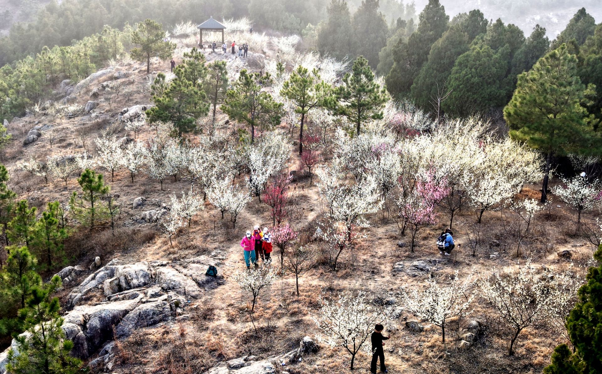 春暖花開,萬物復蘇,位于蚌埠市涂山風景區的綠梅嶺梅花盛開,吸引不少市民參觀打卡。