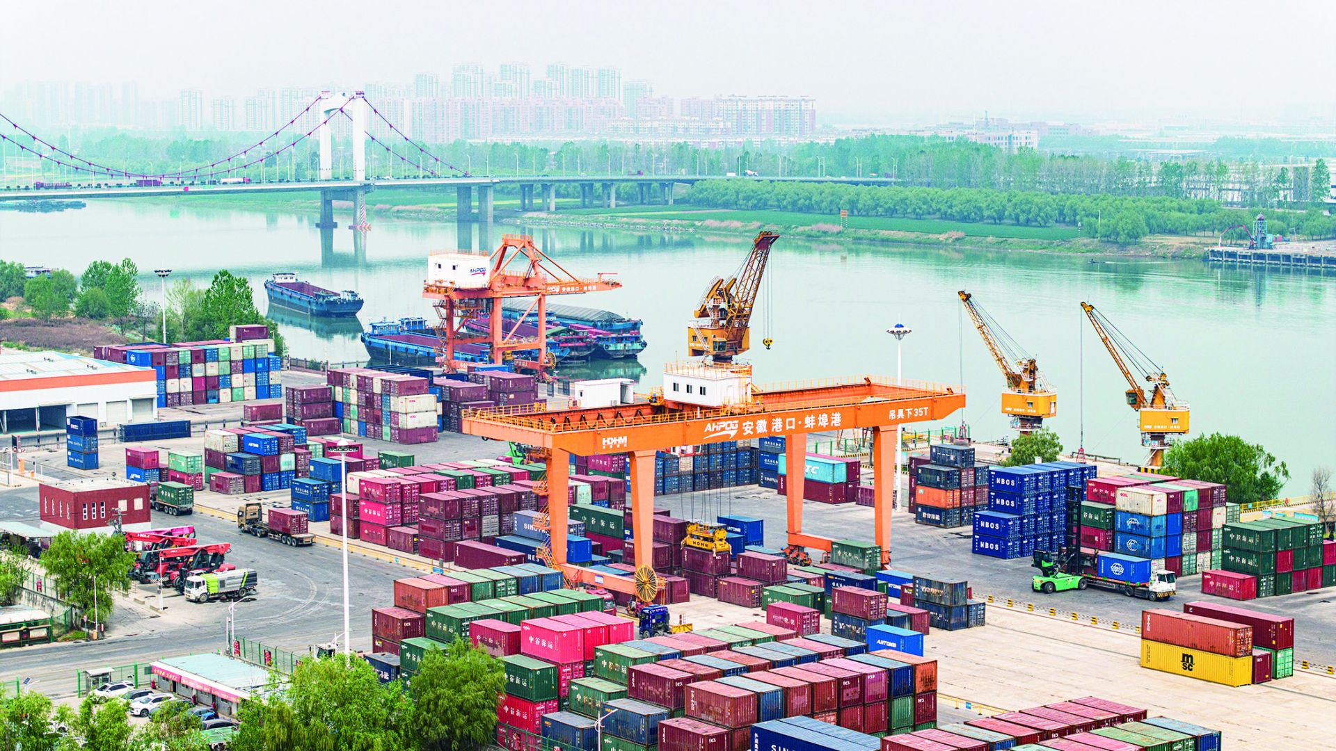 4月9日,蚌埠港集裝箱碼頭一片繁忙的場景。今年一季度,蚌埠港公司聚焦“首季開門紅”目標任務,完成集裝箱吞吐量4.02萬標箱,同比增長4.05%。今年以來,蚌埠港公司主動與飛遠物流、上港長三角公司以及中外運等展開緊密合作,共同拓展白色家電、衛浴、汽車零配件、玻璃制品等外貿業務,著力降低蚌埠市外貿企業物流成本,為蚌埠市高質量發展保駕護航。 (陳昂 謝飛 攝)
