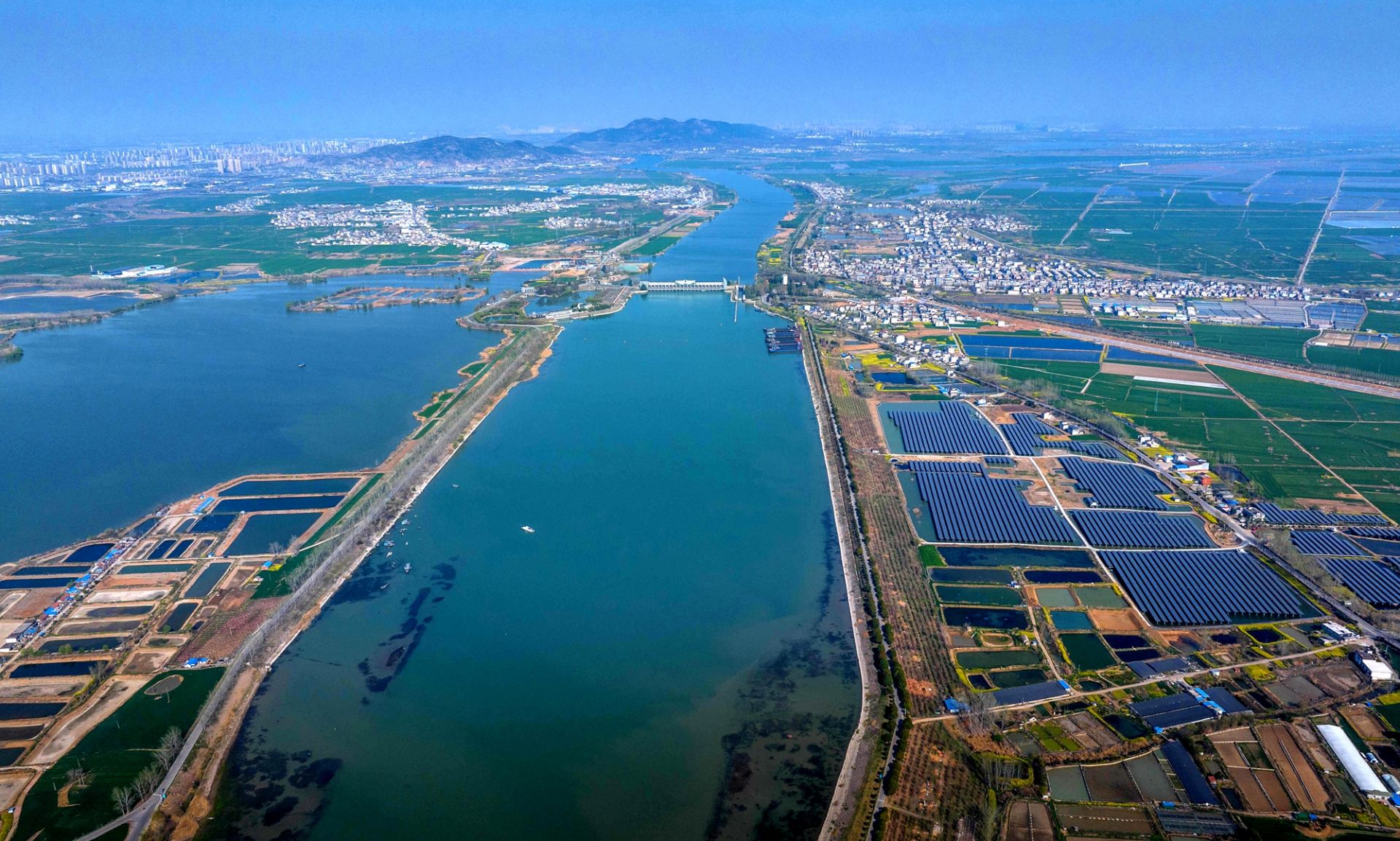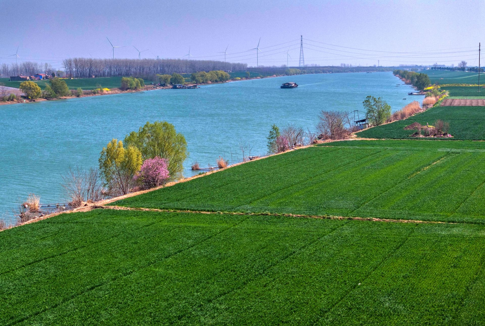 春日,位于安徽省懷遠縣的茨淮新河春天悄然而至,兩岸的楊柳急不可耐地抽出了嫩綠的小芽,布滿了河岸的春花靜靜綻放,河水泛著初醒的惺忪,映出他們模糊的影子。時有運貨船突突駛過,攪動著河水化成萬千波紋,四散逃去,轉瞬又聚攏成片。岸上的農人開始忙碌起來,綠油油的麥地散發濃濃的香氣。
