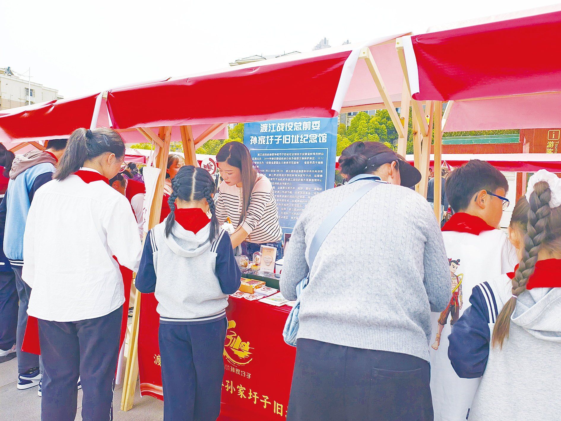 紅色文化宣傳區匯集了江蘇、浙江、安徽三省14家展館近20個展位,展出了場館的特色文創產品、場館內容以及豐富的社教活動信息。渡江戰役總前委孫家圩子舊址紀念館展出特色文創備受青睞。現場的參觀者不僅深入了解了這些紅色場館,同時還參與了集章打卡活動。