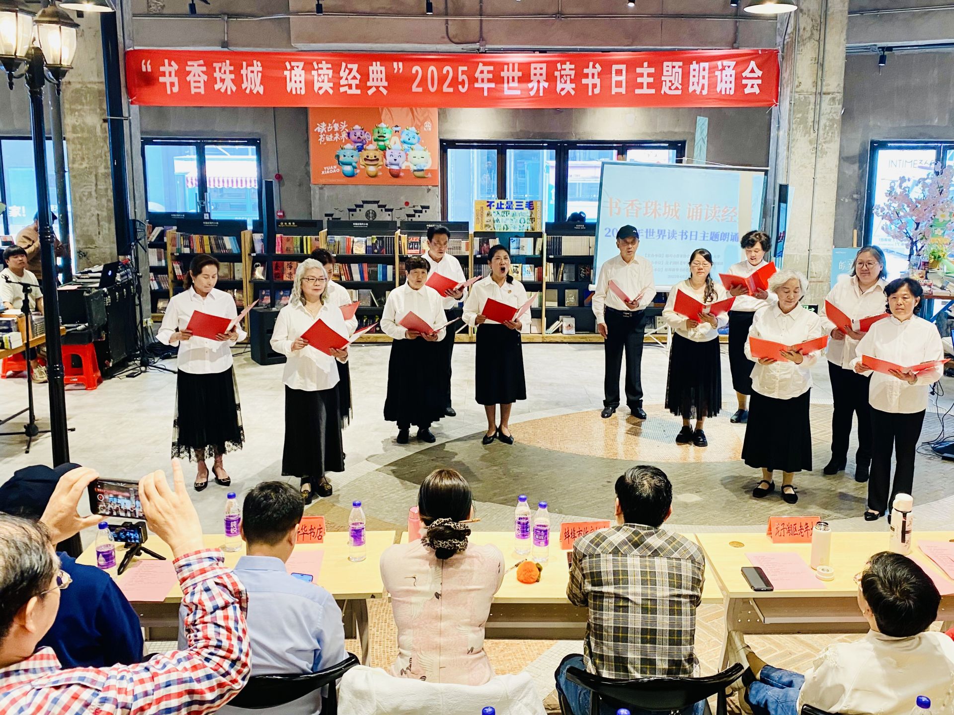 4月22日上午,由蚌埠市作家協(xié)會(huì)與龍子湖區(qū)老年大學(xué)“詩(shī)夢(mèng)芳華”朗誦社聯(lián)合舉辦的“書香珠城 誦讀經(jīng)典”2025年世界讀書日主題活動(dòng)在蚌埠新華書店如期舉行。50余名作家、朗誦者齊聚一堂,滿懷激情朗誦表演,精心編排的12個(gè)朗誦節(jié)目贏得現(xiàn)場(chǎng)觀眾陣陣掌聲。誦讀者們聲情并茂地將《一路書香一路陽(yáng)光》《我們愛朗誦》《在塵世里做最好的自己》《看遍中國(guó)》《老人與海》等及原創(chuàng)作者胡桂芳的經(jīng)典詩(shī)篇演繹得精彩紛呈,讓人們?cè)隈雎犞校I(lǐng)略到文字的韻律之美和情感力量。(高素琴 馬志強(qiáng)