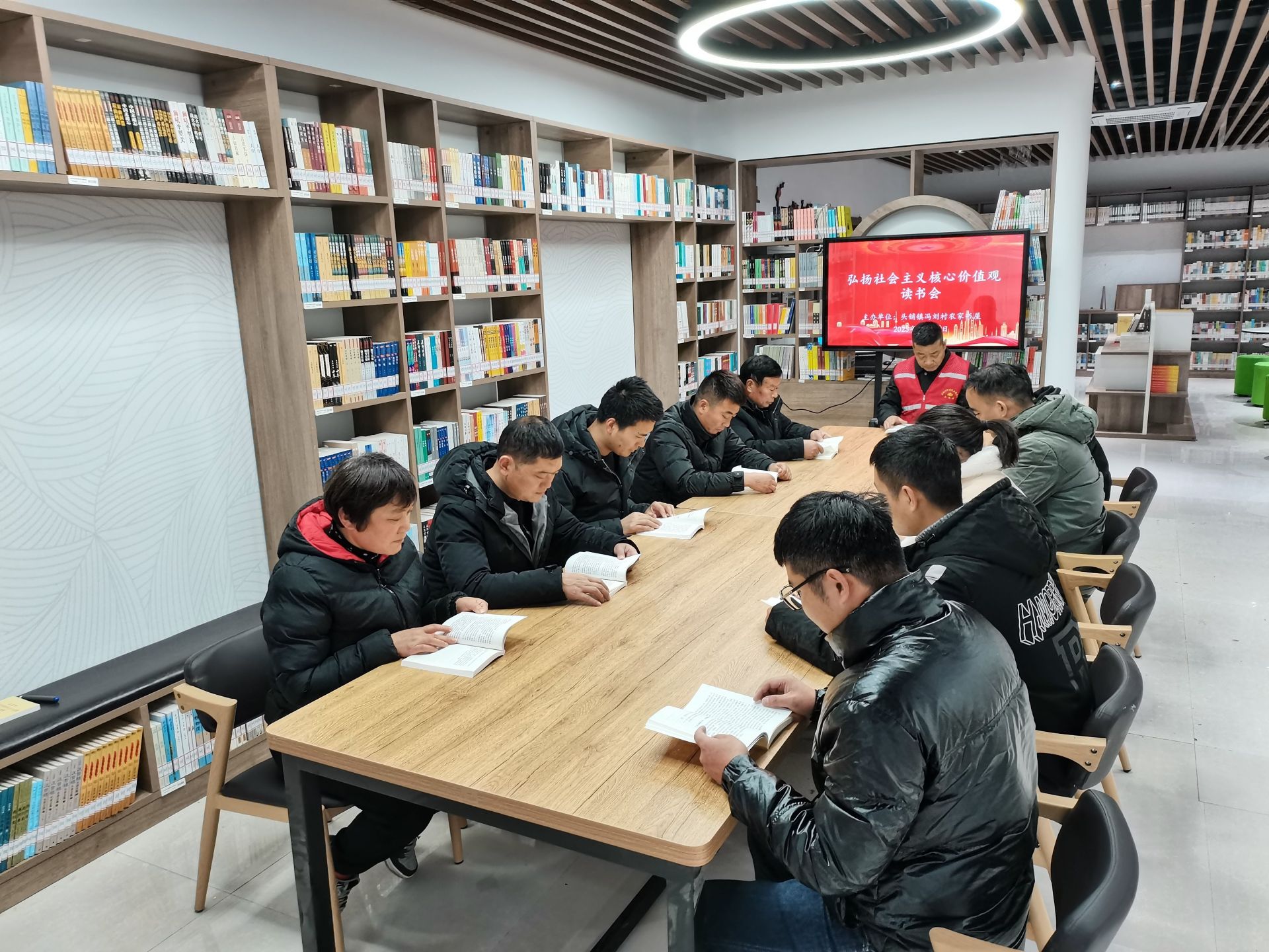 馮劉村農(nóng)家書屋開展弘揚(yáng)社會(huì)主義核心價(jià)值觀讀書會(huì)。