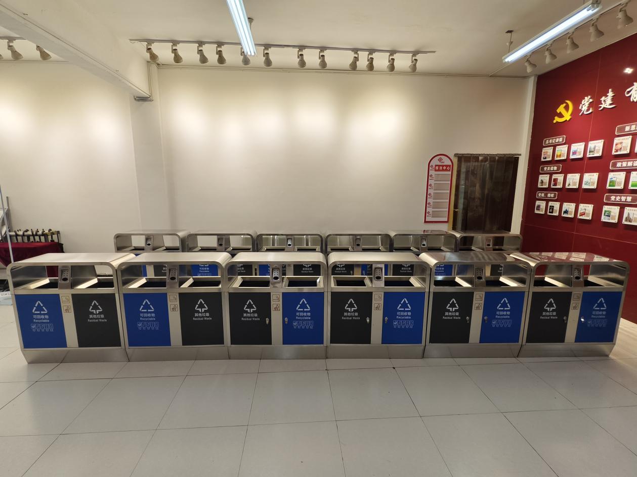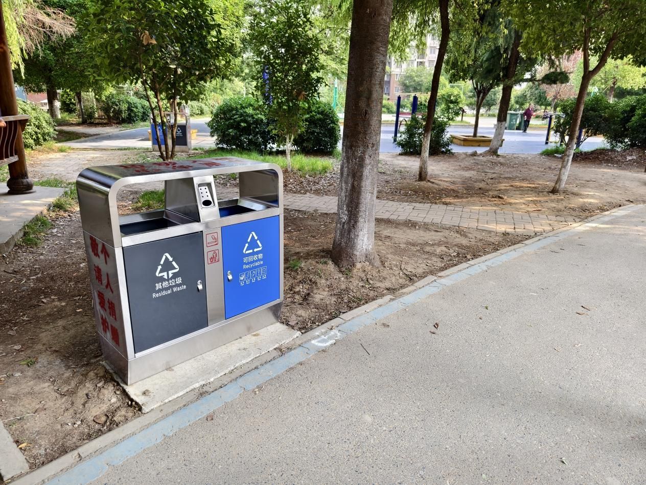 此次捐贈的12個垃圾桶,均為符合現代環保理念的分類垃圾桶。它們外觀簡約大方,功能實用高效,被設置在社區人流密集區域和居民日常活動場所,為社區環境衛生的提升提供有力的保障。這些垃圾桶就像一個個“環保衛士”,將在維護社區整潔、推進垃圾分類工作中發揮重要作用。