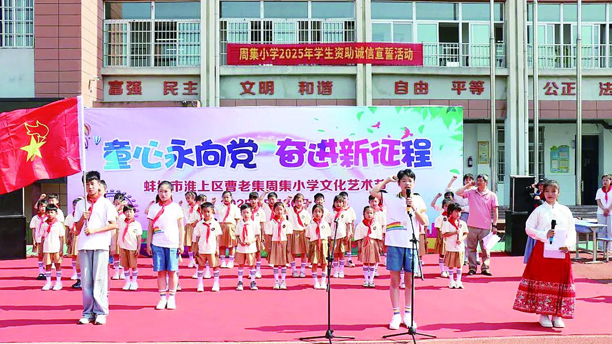近日,淮上區委統戰部、市女企業家協會、中國扇子藝術學會以及愛心企業等來到淮上區周集小學,開展愛心助學活動,給孩子們送來學習、生活用品,與孩子們一起編制艾葉香包、表演節目。袁明云 單莉娜 攝
