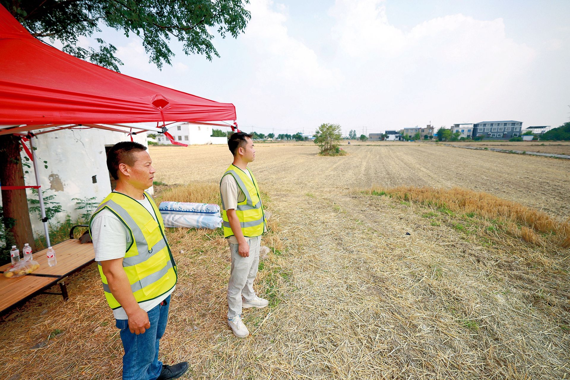 禹會區(qū)馬城鎮(zhèn)草寺村,秸稈禁燒值守人員在點位查看情況。