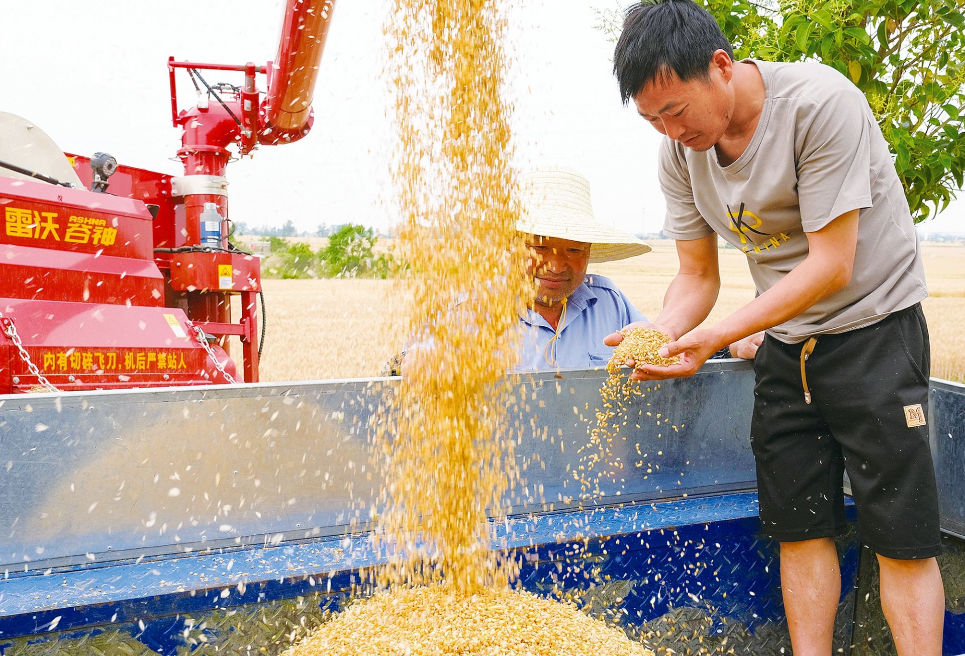 高新區(qū)黃郢村,農(nóng)機來回穿梭,搶收正酣。
