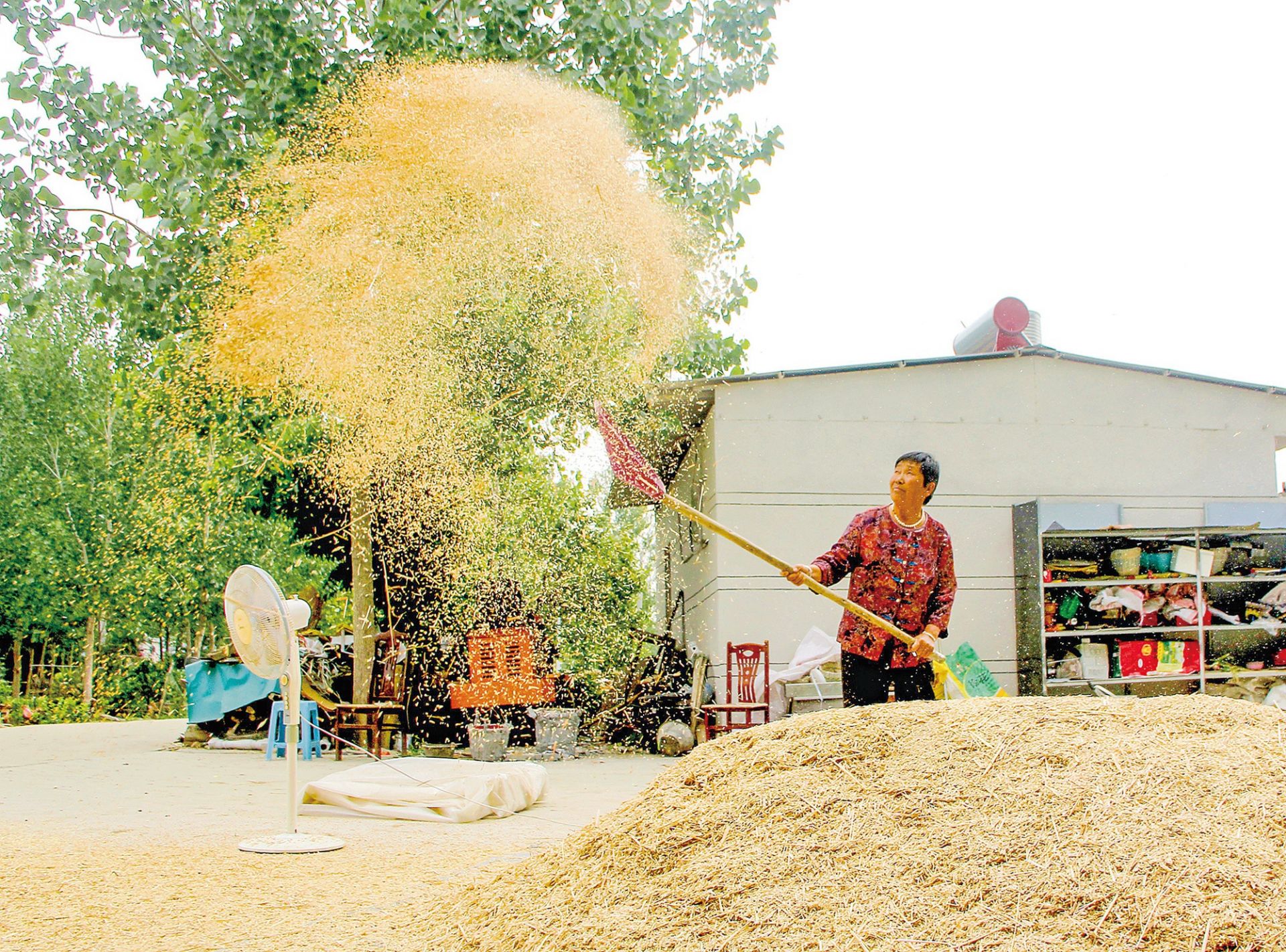 固鎮(zhèn)塘南村,當?shù)剞r(nóng)戶進行揚場。只有經(jīng)歷了這道工序,干干凈凈的飽滿麥粒才可以呈現(xiàn)在眼前。