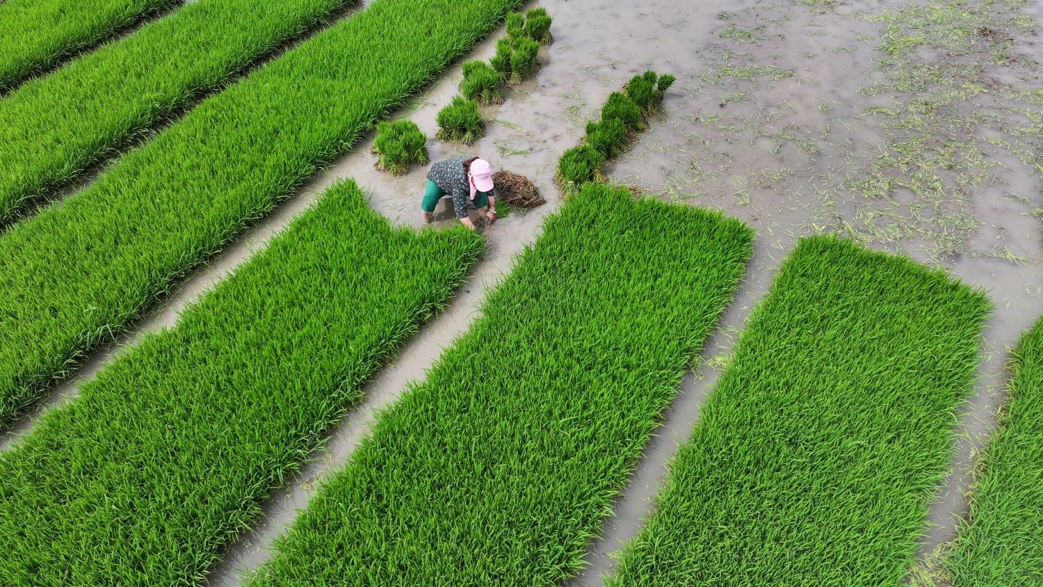 近日,在安徽省蚌埠市五河縣小溪鎮藕塘村,當地村民搶抓有利天氣移栽早稻秧苗,準備移栽到大田,田間一派繁忙的勞作景象。