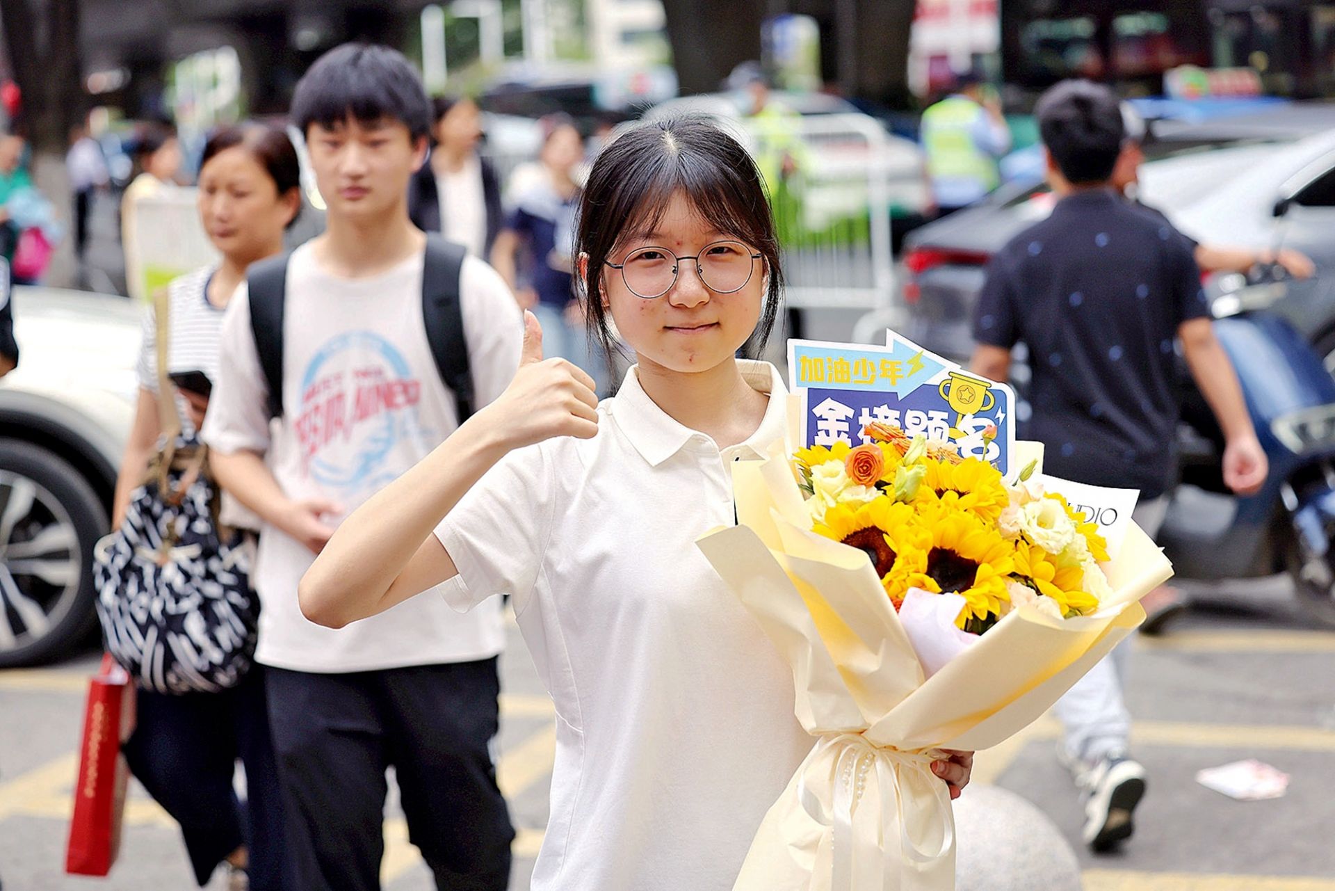 6月7日中午,一中考點(diǎn),考生為自己加油。