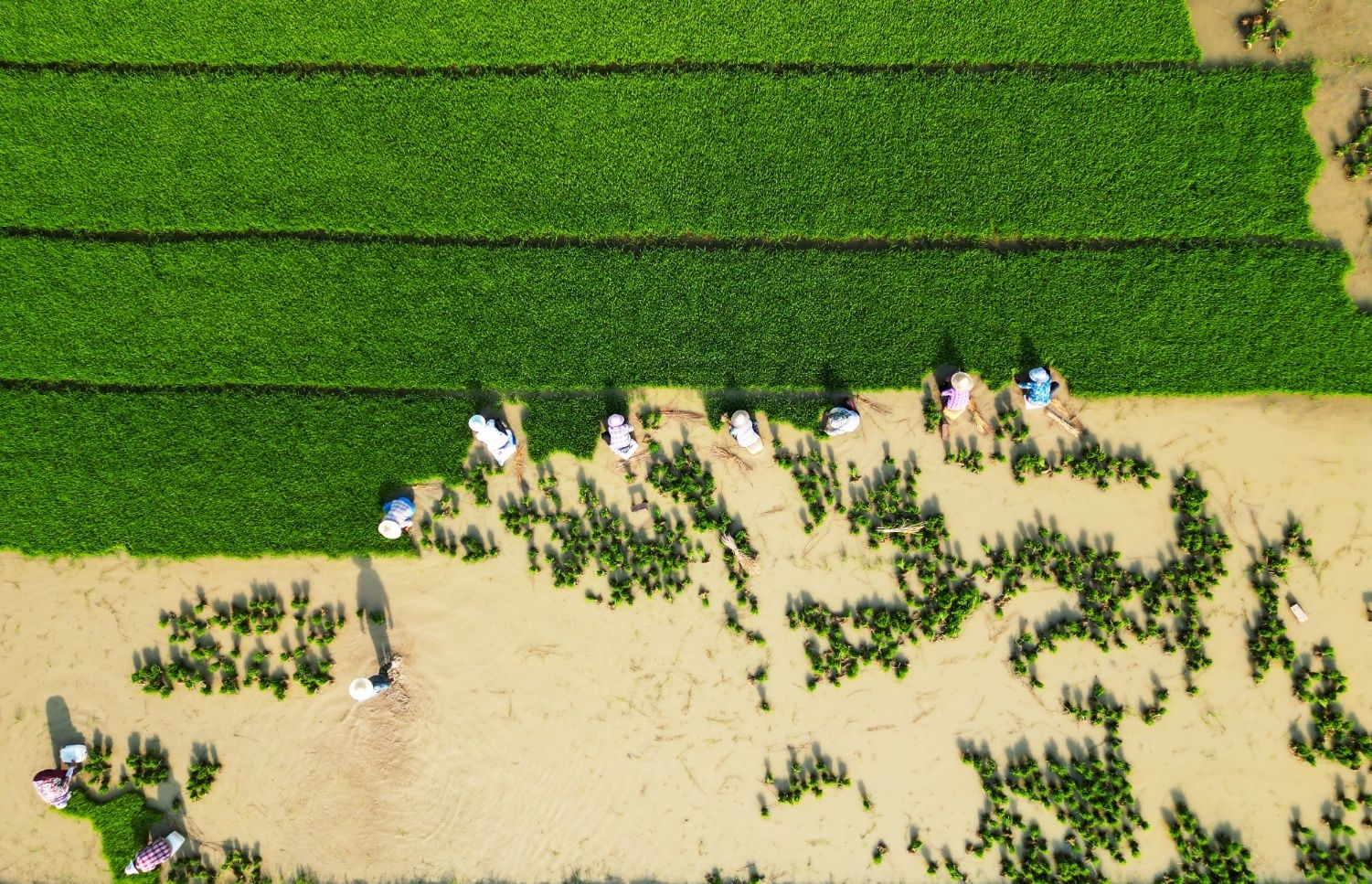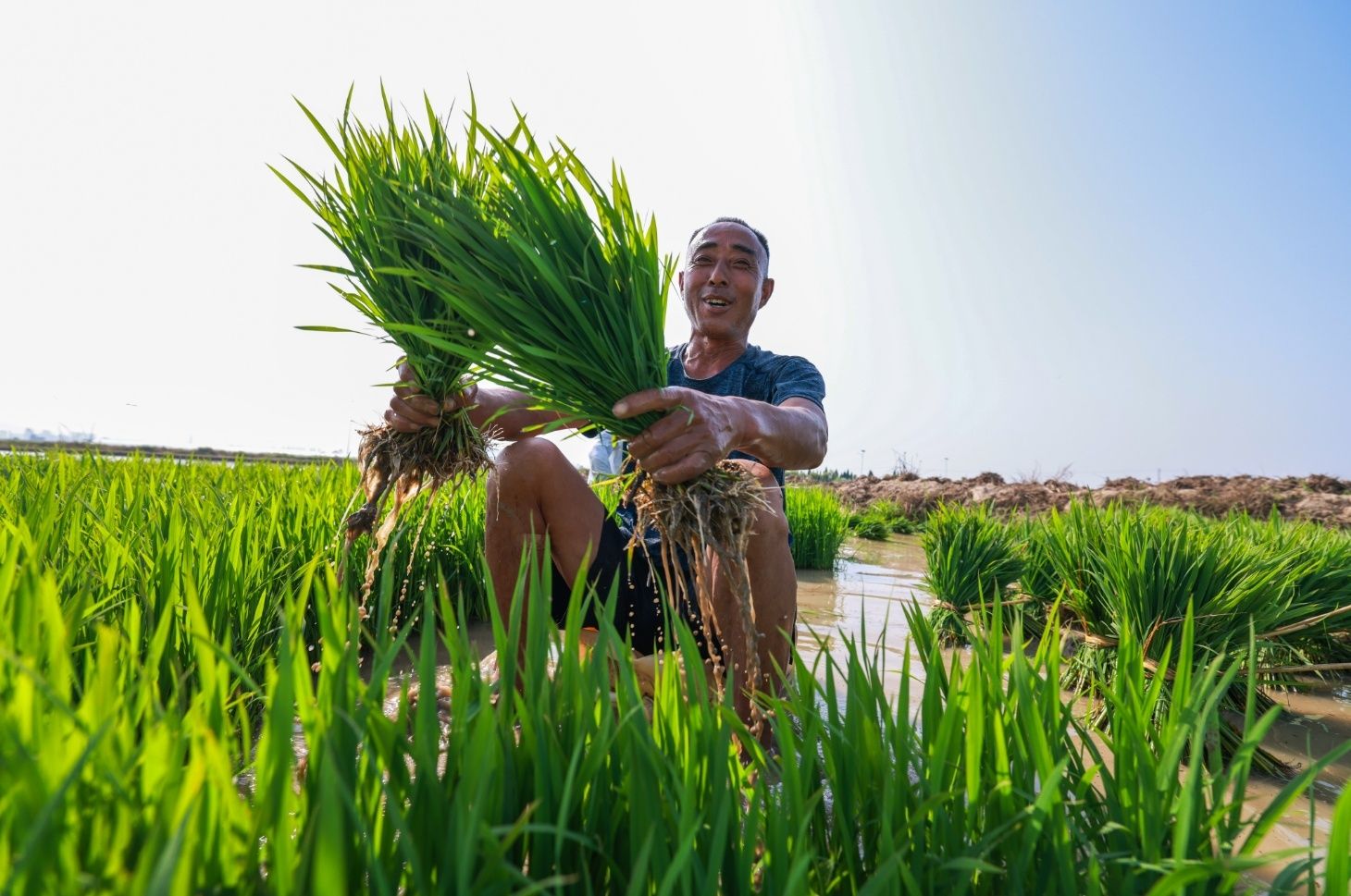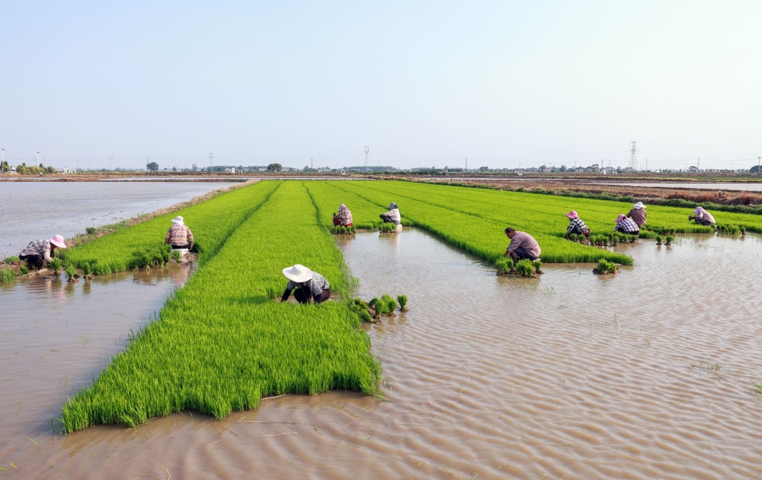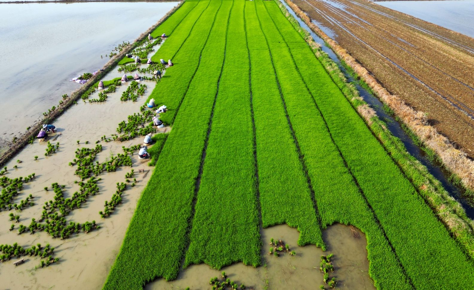 夏日時節(jié),水稻插秧的農(nóng)忙序幕正式拉開。在安徽省蚌埠市懷遠(yuǎn)縣水田里,農(nóng)民們頭戴草帽,腳踩泥濘,將一捆捆嫩綠秧苗,化作希望的“畫筆”,彎腰、分秧、插入水田,以辛勤汗水,勾勒出夏日里最美的耕耘畫卷,孕育豐收的期許 。