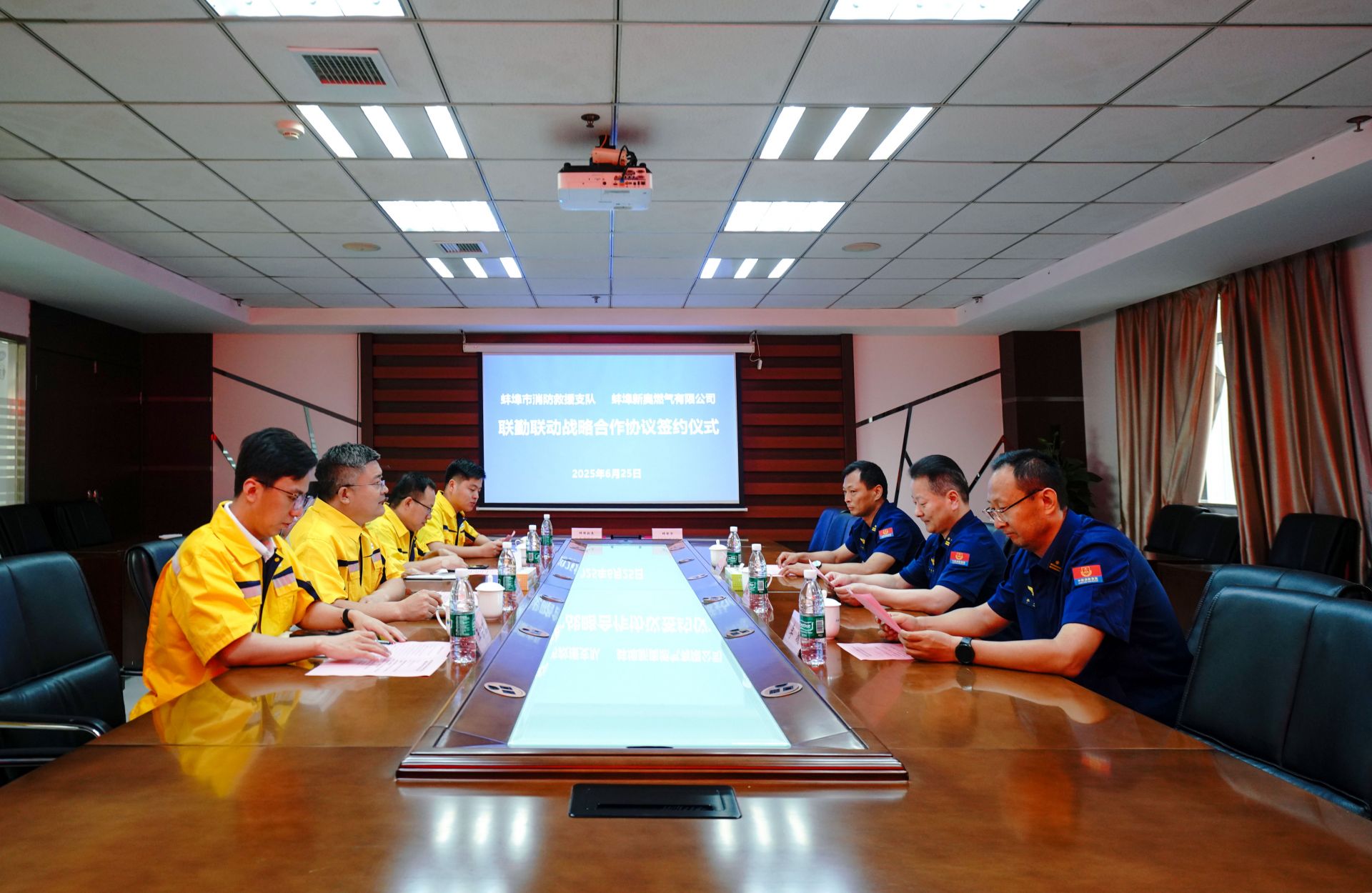 近日,蚌埠市消防救援局與新奧燃?xì)庥邢薰九e行戰(zhàn)略合作簽約儀式暨燃?xì)庑孤┞?lián)動(dòng)處置演練。
