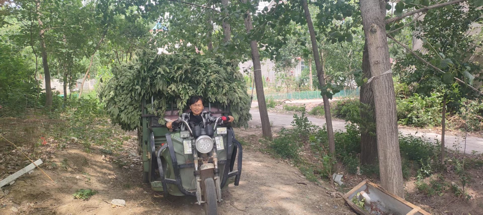 張月芳根據季節變化,準備養殖草料。春夏飼草資源豐富,特別是隨處可見的雜草抓膘促長快,張月芳就會利用足夠的時間采集青草喂羊。到了秋天,農作物進入收獲期,山芋秧、花生秧都是養羊的上等草料,這個時候,張月芳就會應鄉鄰的約定,幫人家義務清理山芋秧、花生秧,歸自己所有。收集這些農作物的藤蔓,身體健全者尚不輕松,對于一個殘疾人來說是種嚴峻的考驗,張月芳時常被絆倒在地上,有時候累極了,干脆就在地上躺一會。可她不能停下來,她的身后是待育的羊群,是一份沉甸甸的家庭責任,她要抓住山芋收獲季節的難得機遇,采收更多的飼草,為即將到來的冬季備足草料。