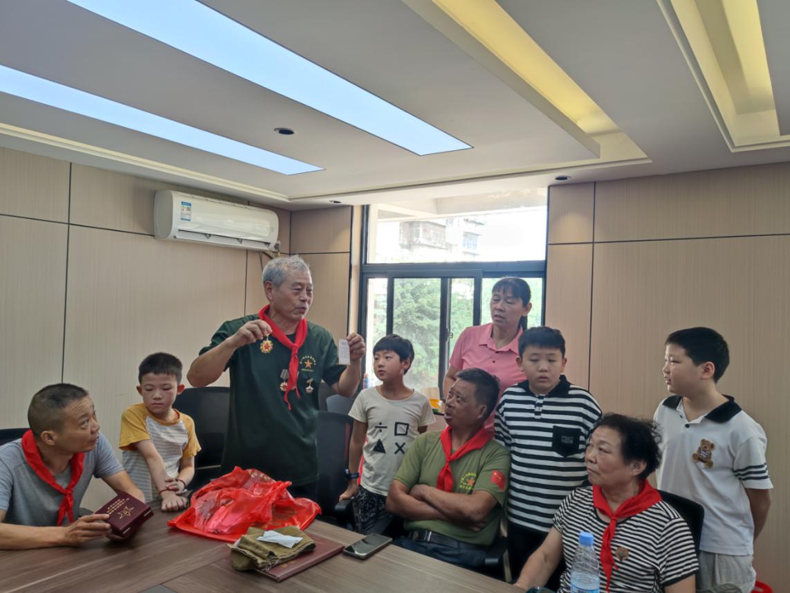 社區會議室內軍歌嘹亮,紅領巾的鮮艷與綠軍裝的厚重交相輝映。退役軍人圍坐在一起,分享軍旅生涯中的往事,從邊境巡邏的驚險瞬間到抗震救災的生死救援,每一段回憶都牽動著在場聽眾的心弦。孩子們也踴躍登臺,聲情并茂地講述《金色的魚鉤》《飛奪瀘定橋》等紅色故事,用清澈童聲詮釋著對英雄的敬仰與崇拜。
