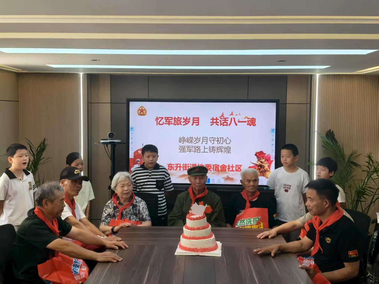 “八一”建軍節臨近,7月30日,龍子湖區東升街道地委宿舍社區一場以“憶軍旅歲月 共話八一魂”為主題的活動溫情啟幕,退役軍人們與合肥師范學院“核光同塵”朝陽行知學堂志愿者和孩子們齊聚一堂,讓“八一”精神在歡聲笑語中悄然扎根,讓軍民魚水情在互動交融中愈發濃厚。