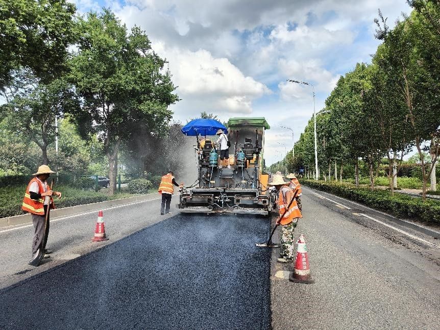 17:00,蚌埠市勝利西路開(kāi)展瀝青攤鋪?zhàn)鳂I(yè)。施工人員堅(jiān)守37℃高溫現(xiàn)場(chǎng),嚴(yán)格按標(biāo)準(zhǔn)流程推進(jìn)工作。