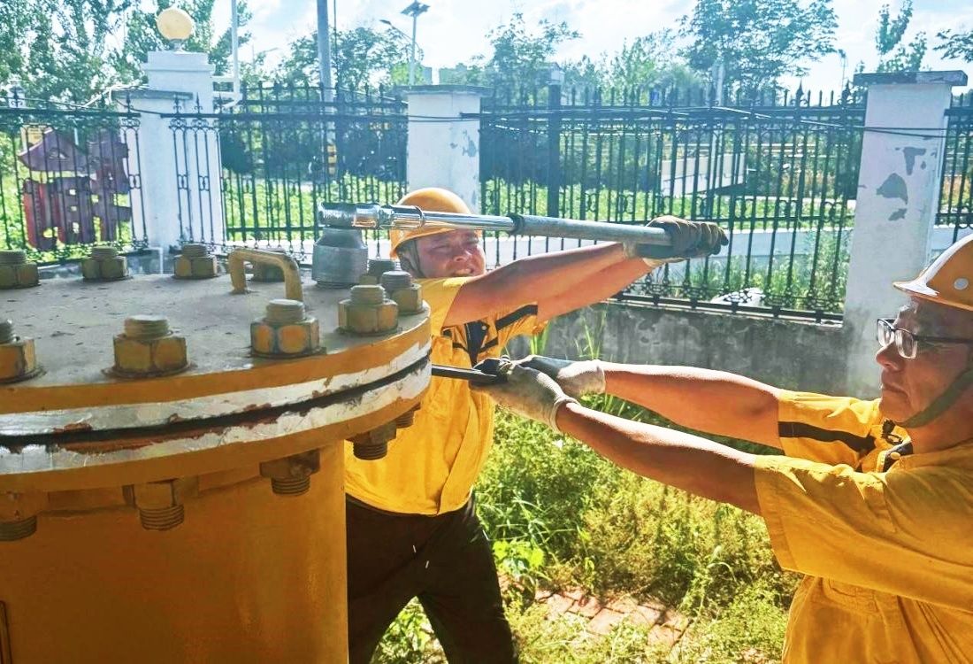 10:00,為保障市政燃?xì)夤芫W(wǎng)平穩(wěn)運(yùn)行,蚌埠新奧燃?xì)庥邢薰具\(yùn)營(yíng)保障群搶維隊(duì)在比亞迪南側(cè)次高壓調(diào)壓站開(kāi)展一級(jí)維護(hù),完成壓力測(cè)試、過(guò)濾器排污等項(xiàng)目。炎炎烈日下,大家揮汗如雨卻操作精準(zhǔn),以專業(yè)能力保障設(shè)備長(zhǎng)期平穩(wěn)運(yùn)行。