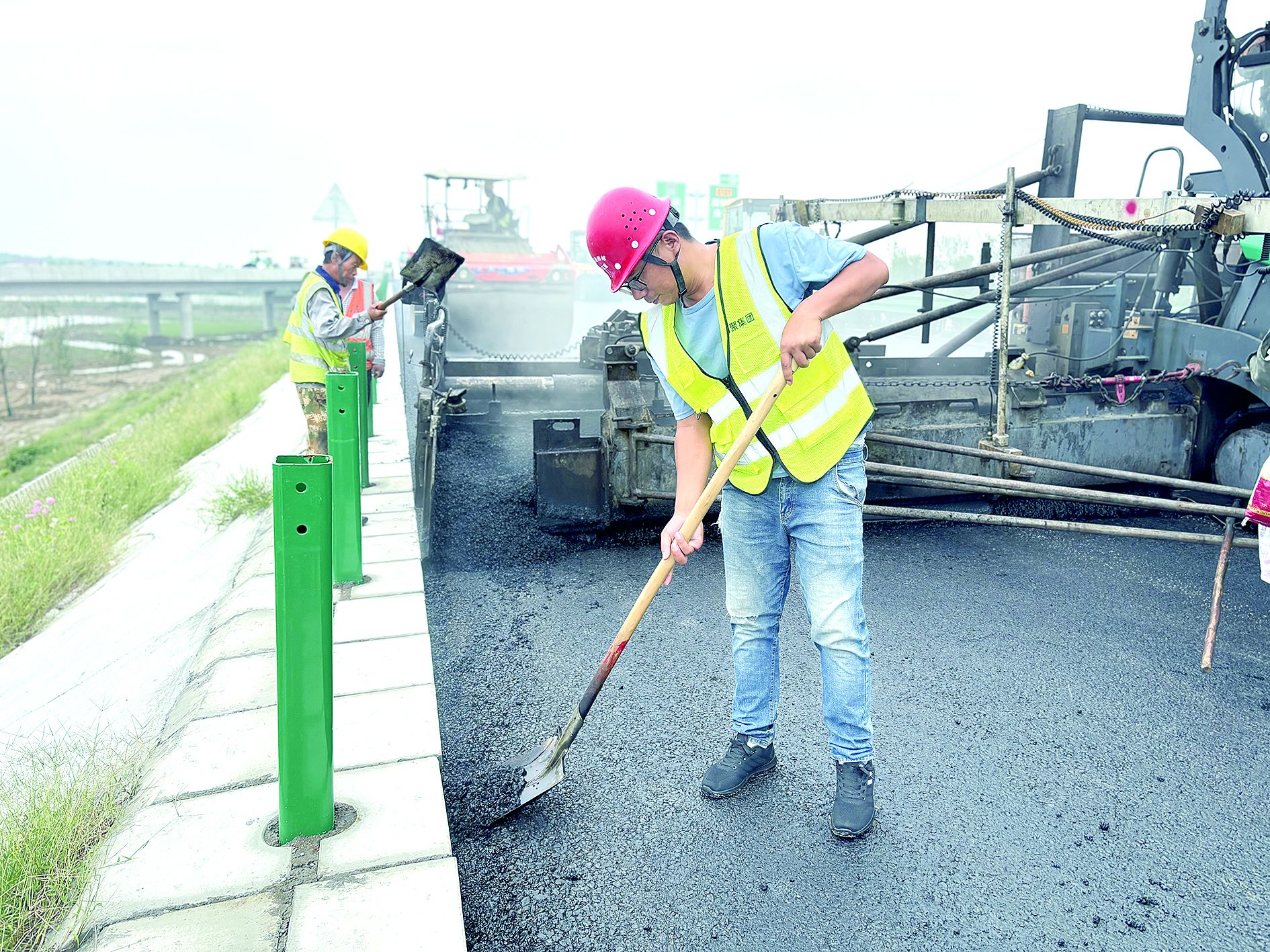 “前一階段陰雨天影響工期,我們標段在假期安排機械操作工和攤鋪人員將近四十人,分兩班倒的形式加班加點地搶工期,爭取在這幾天把工期搶回來?!焙v偉說,他的老家在舒城,一年多前來到項目上,就一直在瀝青攤鋪施工一線?!盀r青施工是個‘靠天吃飯’的工序,受天氣情況影響較大,我們唯有不斷調整節奏,確保年底通車目標?!?/p>