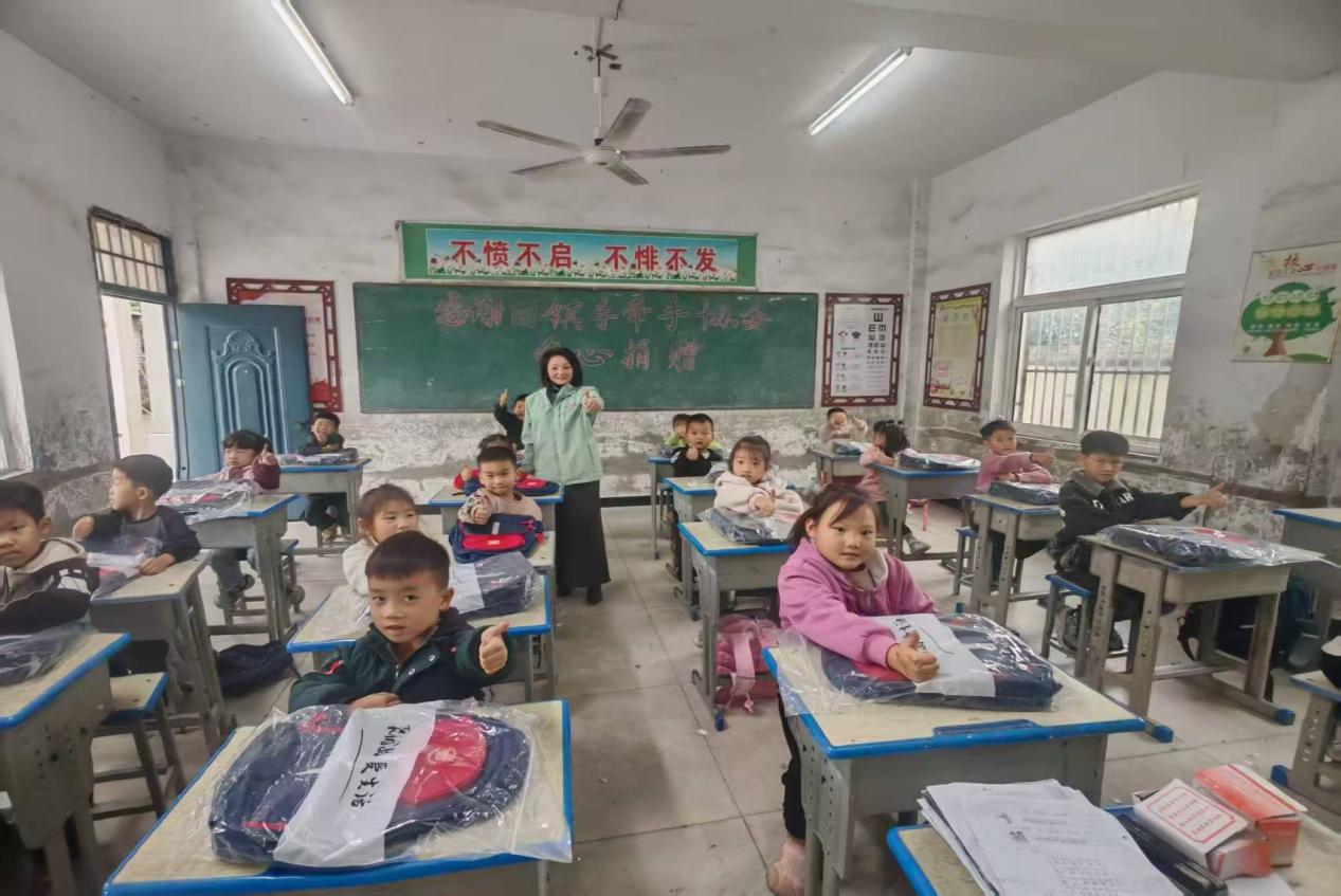 “哇!是新書包!”剛接過書包的蔣慕妍立刻把書包抱在懷里,興奮地站了起來,臉上滿是開心。一旁的蔣銘軒則迫不及待地拉開書包,小心翼翼地把自己的課本、鉛筆盒往里面放,嘴角彎成了小月牙:“以后我每天都背著它上學!”孩子們嘰嘰喳喳的分享聲,讓整間教室充滿了童真與暖意。