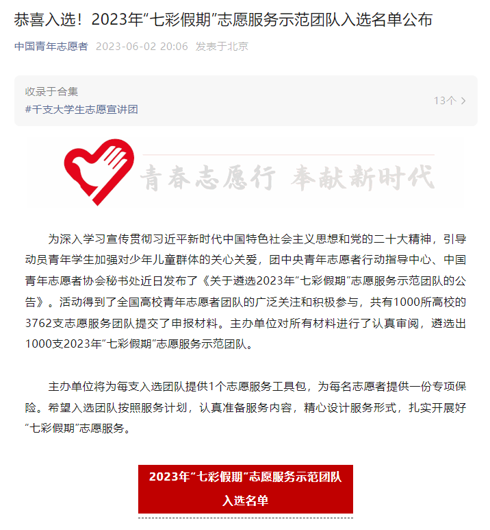 蚌埠文明網(wǎng)訊 (融媒體記者 周芳林)近日,團中央青年志愿者行動指導(dǎo)中心、中國青年志愿者協(xié)會秘書處發(fā)布《2023年“七彩假期”志愿服務(wù)示范團隊入選名單》,安徽財經(jīng)大學(xué)法學(xué)院助苗人法治文化宣講團成功入選。