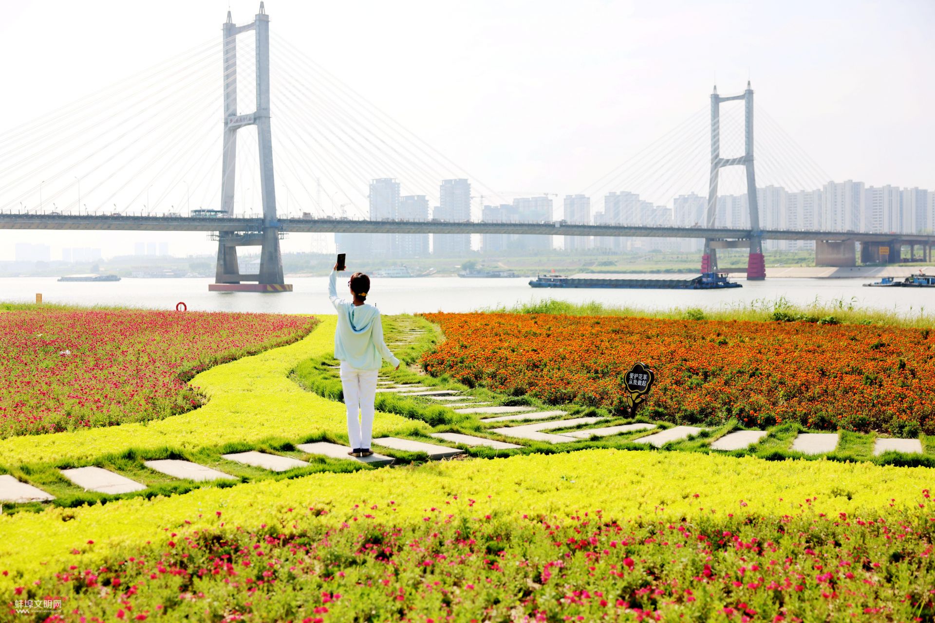 8月11日,解放路淮河大橋西側靚淮河北岸綠草茵茵、花香撲鼻,市民在此拍照游玩。 近年來,我市開展“綠滿珠城”、城鎮(zhèn)園林綠化提升行動等,城市綠化增量提質(zhì),市民幸福感和獲得感不斷增強。