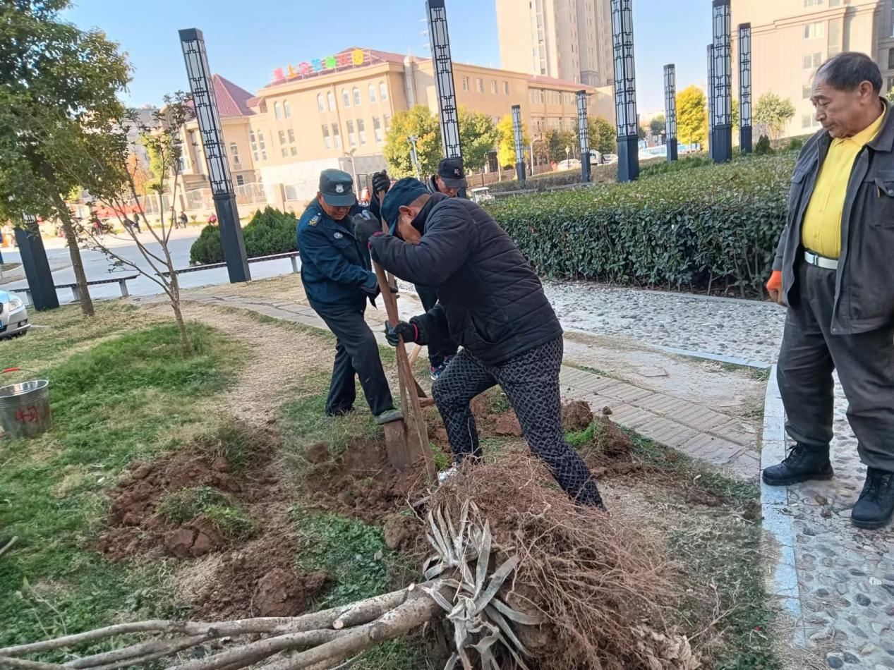 植樹當天,盡管天氣寒冷,但社區廣場上卻熱鬧非凡。工作人員早早地來到植樹現場,有的帶著鐵鍬、有的帶著手套,還有的帶著水桶。工作人員井然有序地忙碌著,場面十分溫馨和諧。經過一上午的時間,一共種植了50余顆樹苗。一棵棵樹苗在社區工作人員的共同努力下,整齊地排列在社區的空地上。這些樹苗不僅為冬日的社區增添了一抹綠色,更為居民們帶來了希望和憧憬。路過的居民表示,社區植樹行為讓他們深刻認識到綠化環境的重要性,也讓他們更加珍惜眼前的美好家園。