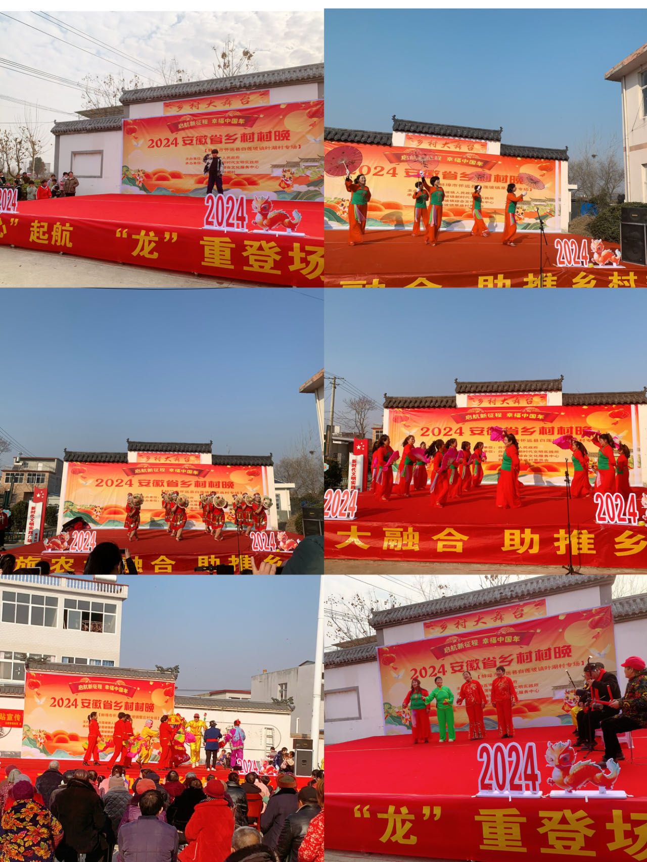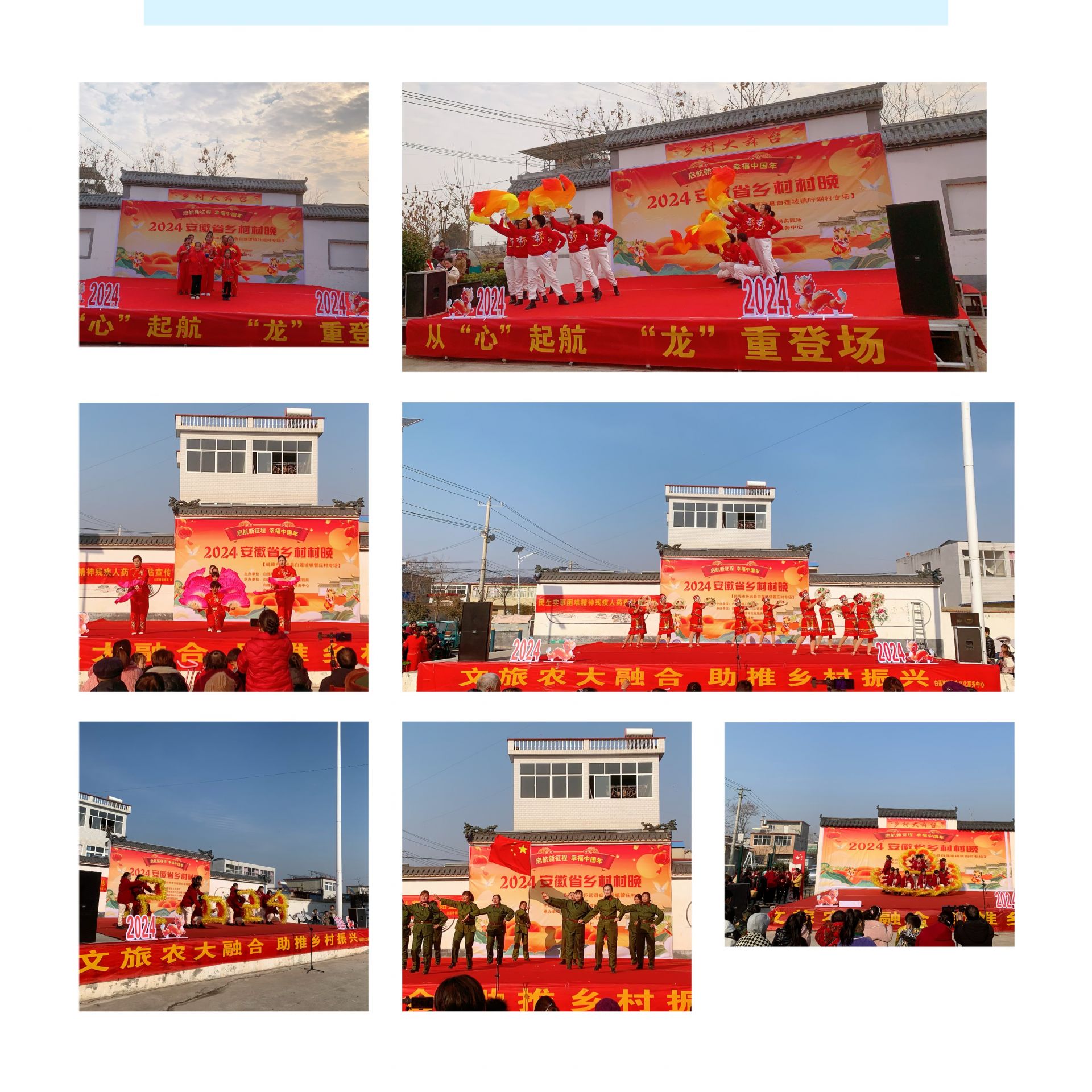 本次村晚設置三個專場地相繼舉辦,同一主題不同節目進行演出。以非遺民俗表演如花鼓燈、旱船、花轎、連槍等同時配搭原創廣場舞、民族舞,吸收現代舞、街舞,兼容大合唱、二人轉、獨唱等多種表演形式,內容豐富,打造場場精彩高潮迭起,群眾喜聞樂見的文藝匯演大聯歡盛宴。
