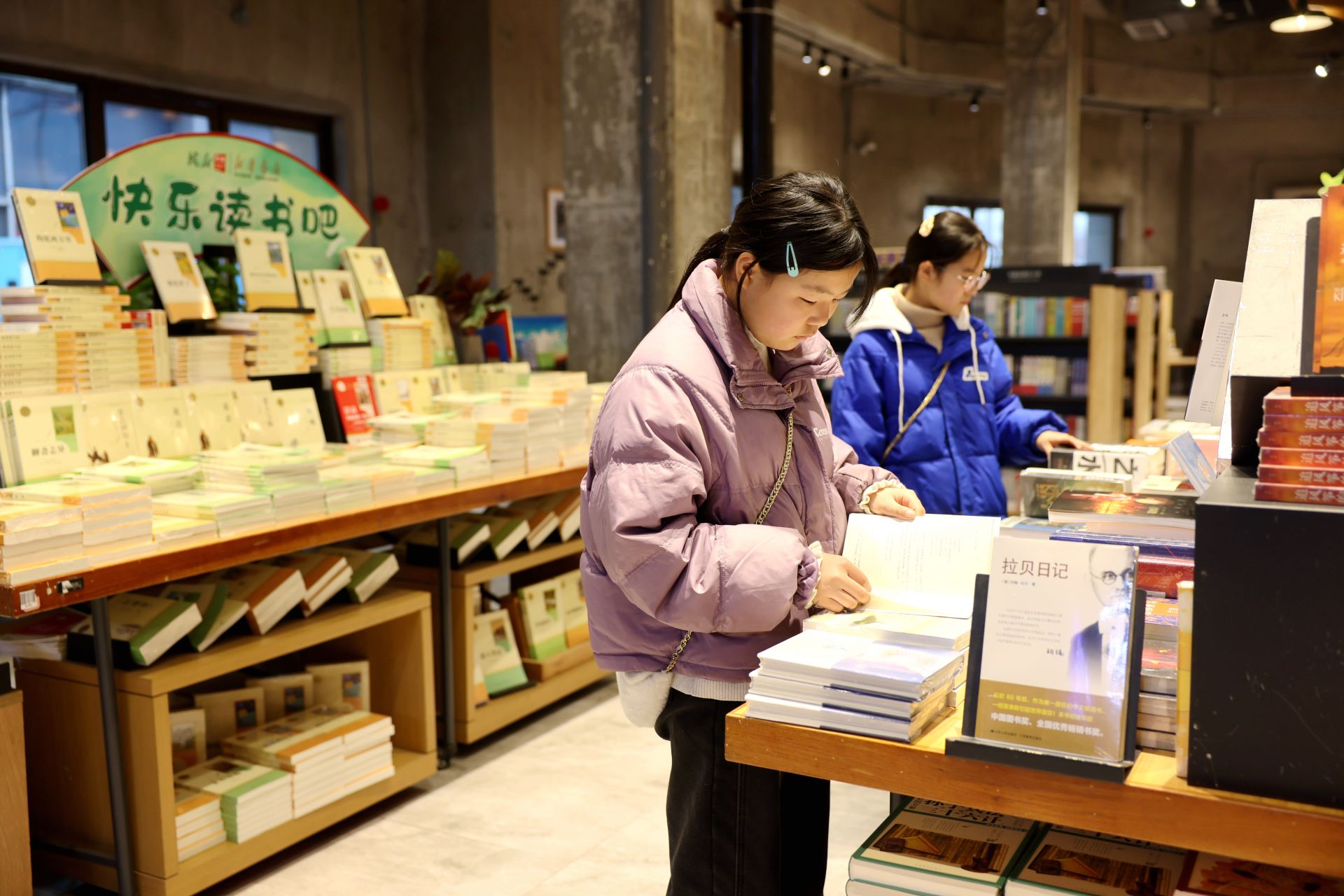 1月31日,放假學生在蚌埠新華書店選購書籍。
