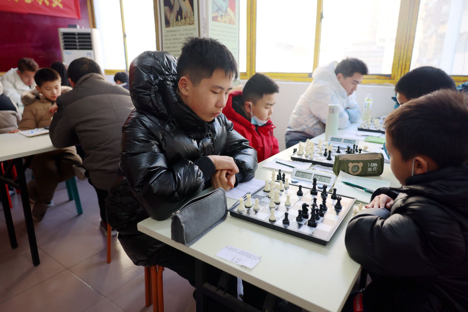 1月26日,參賽學生在蚌埠棋院進行國際象棋比賽。