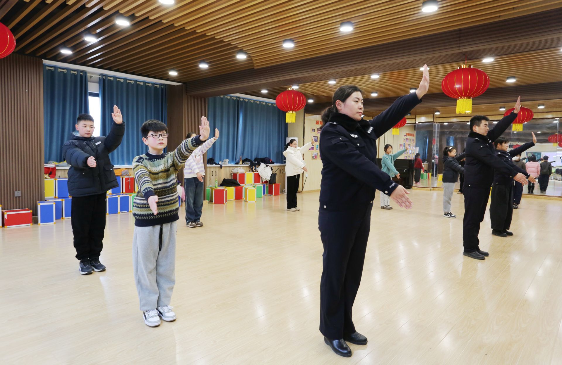 日前,蚌山小學孩子們正在和民警排練節目,準備參加市公安局春節聯歡晚會。