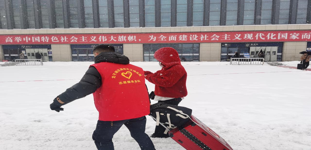臨近春節,大雪將城市裝扮的銀裝素裹,但是厚厚的積雪阻礙不了治淮街道志愿者的熱情,外出務工人員紛紛踏上返鄉的道路,在蚌埠火車站有一群“紅馬甲”格外的醒目,他們就是龍子湖區治淮街道“學雷鋒”志愿服務隊。