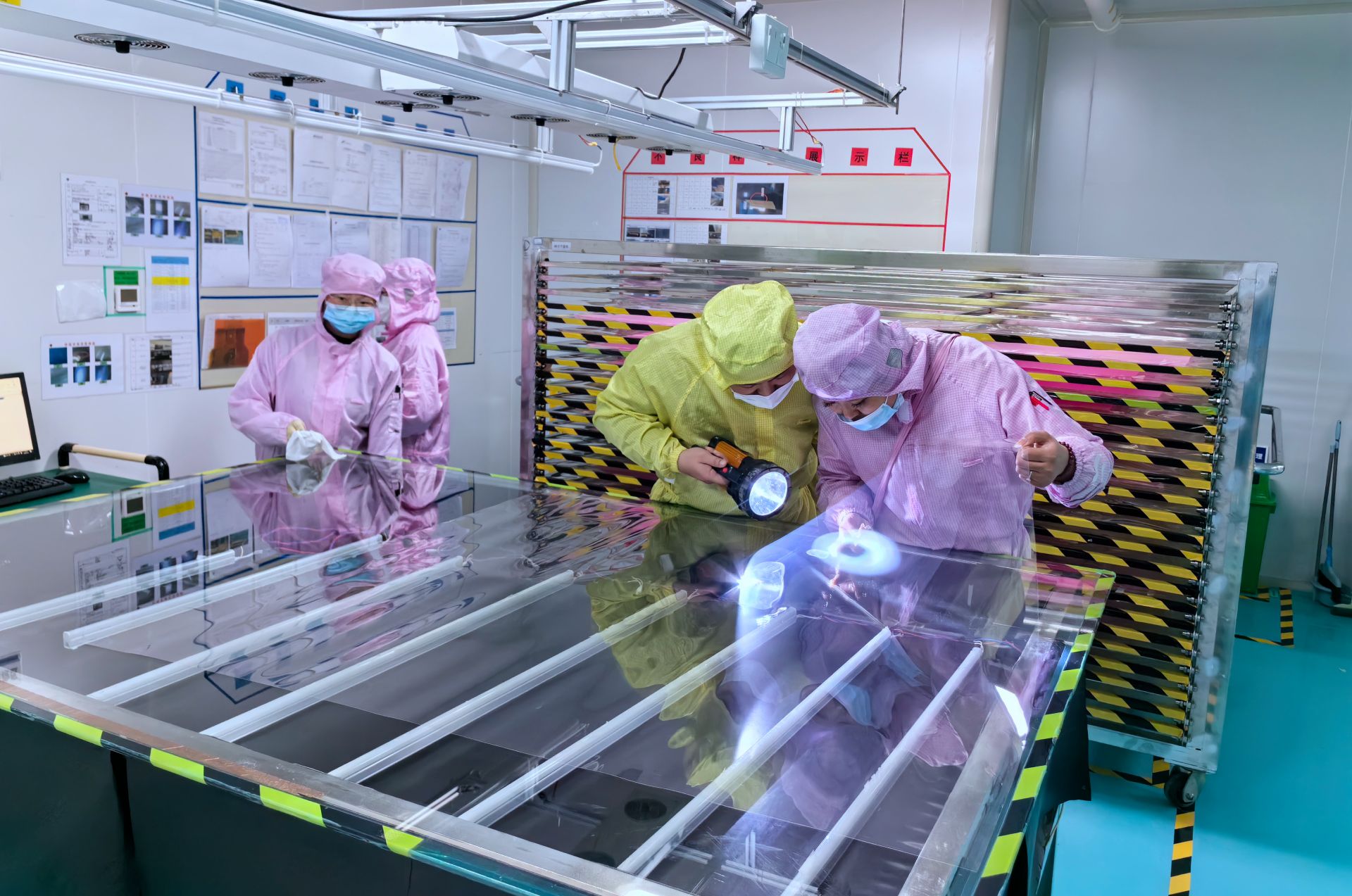 安徽諾金納米科技有限公司生產車間內,身穿防護服的工作人員正在檢查產品外觀。