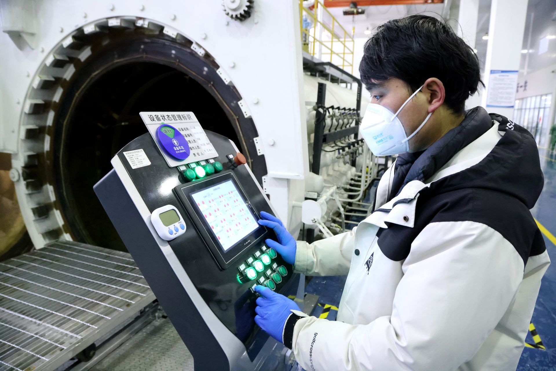 蚌埠凌空科技有限公司生產車間內,工作人員正在進行熱壓罐操作。