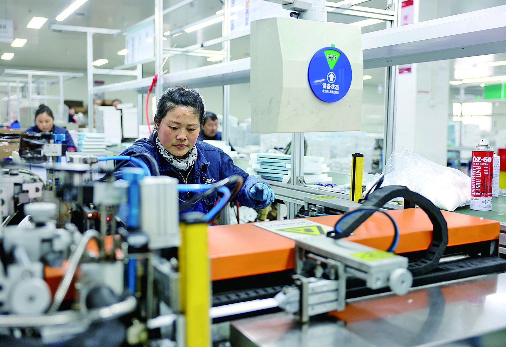 蚌埠天成包裝科技股份有限公司生產(chǎn)車間,工人檢查機(jī)械設(shè)備運(yùn)行情況。